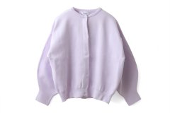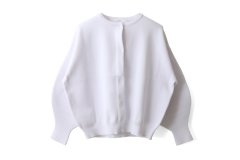 大好評のカーディガン。”AMOSSA”という名前のポリエステル100%の糸を使用した、スポンジのようなボリューム感と高伸縮性があり、柔軟性にも優れた素材。袖を通したときに驚くほど軽いのが特徴です。伸縮性とハリのある素材なのでシルエットが崩れず、着心地も抜群です。程よく厚みがあり、1枚で着ても透けずに着用できるのも嬉しいポイント。ショート丈なので羽織にしたり、ボトムを選ばず合わやすいシルエットです。ボタンを全て留めてプルオーバーのようにお召し頂くのもおすすめ。シンプルなデザインなので、柄物のボトムや、アクセサリー・スカーフなど小物とのコーディネートも楽しめます。