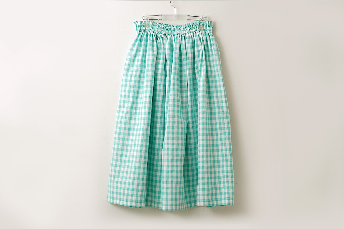一年を通して活躍してくれるギンガムチェックのショップ別注ギャザースカート。 愛らしい色合いとハリ感のある生地が、大人の可愛さを演出してくれます。美しいシルエットでありつつリラックスした着心地なので、おうちでのお洒落を楽しむのにも、お出かけにもオススメです。ホームクリーニング可。