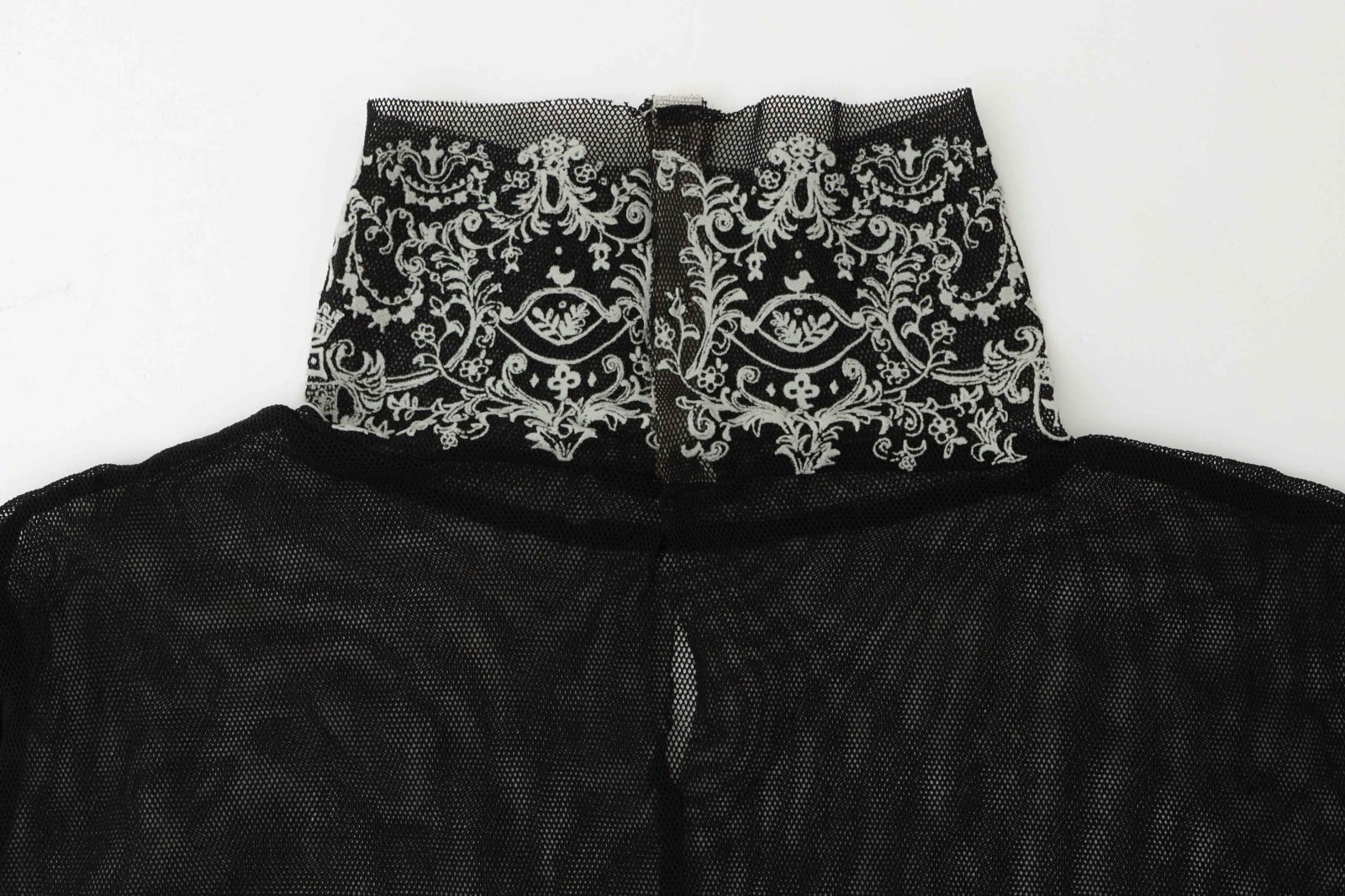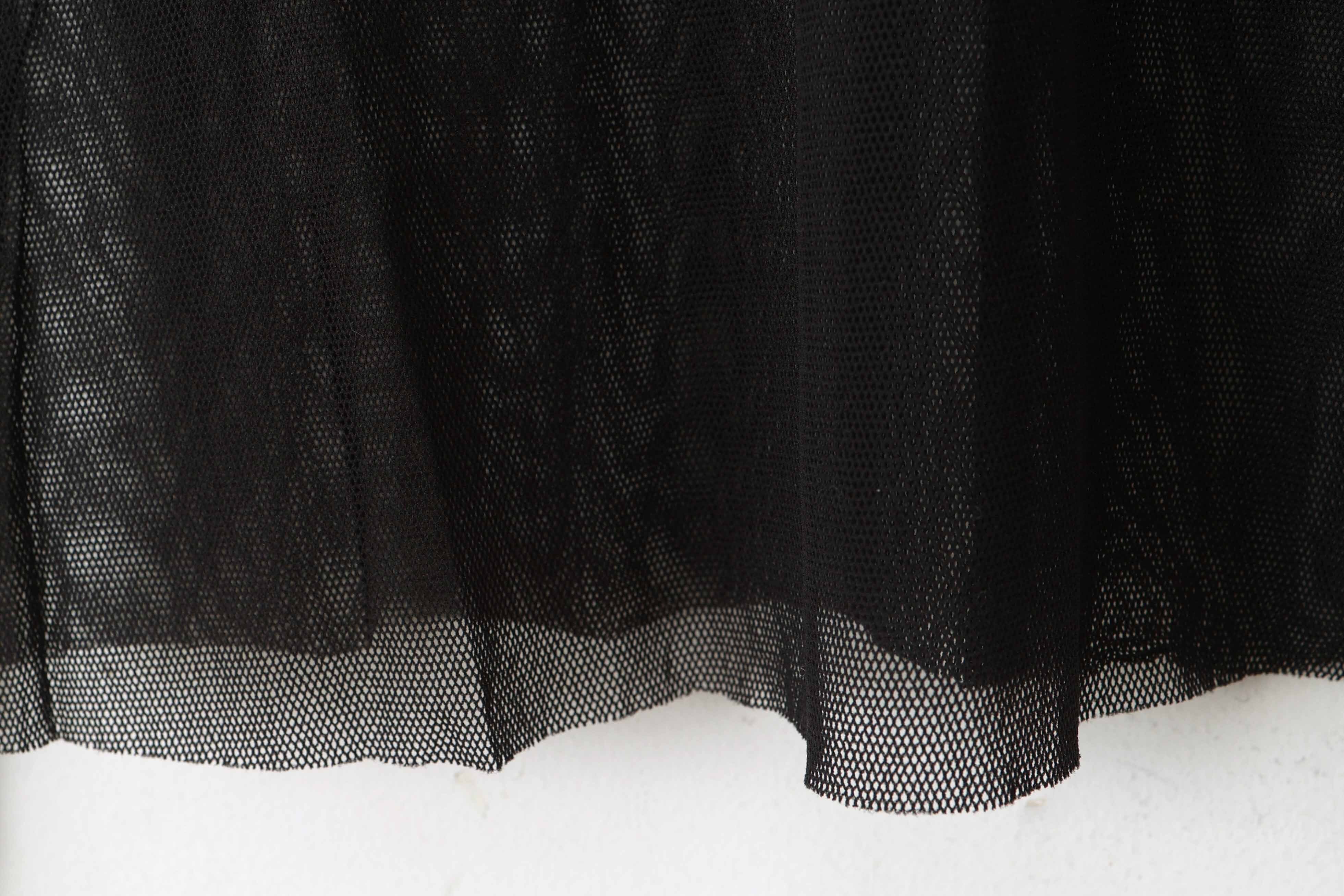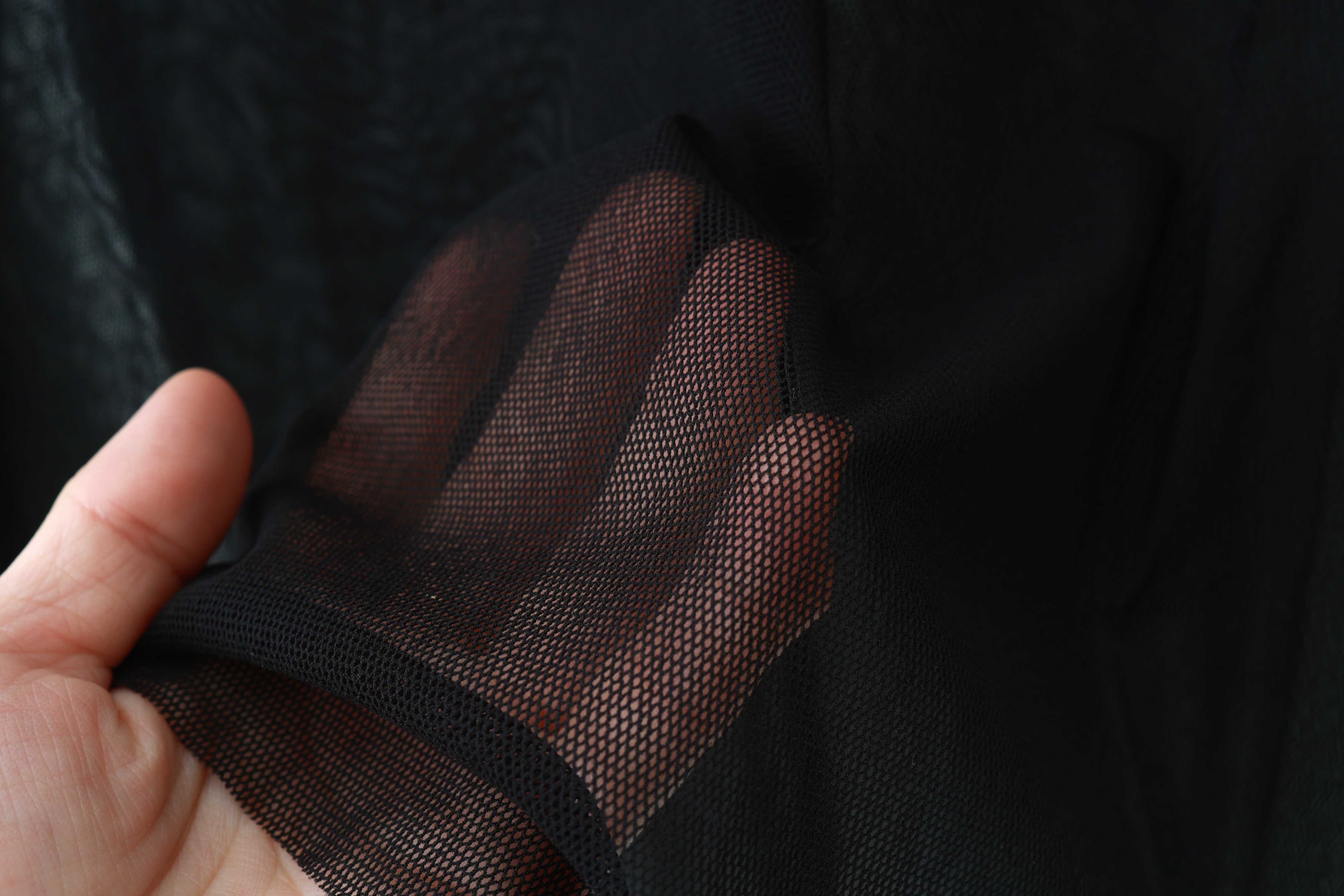 | 商品説明 | メッシュ素材に袖口とネック部分にフロッキープリントが施されたカットソー。柔らかな肌触り。ワンピースやベストのインナーとしてお召し頂くと、抜け感が演出できます。タートルネックの後ろがボタン開き。 |