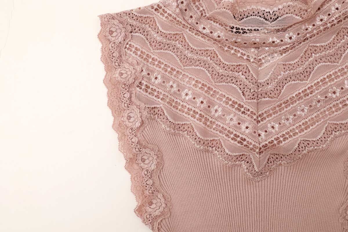 | ※ | インポート商品は日本の検品よりもやや緩く、製造時にやむなくついてしまった小さな線や、入荷時より多少のほつれなどが含まれるものがございます。良品として輸出された商品で、不良品ではございません。尚、レース部分ではなく上に重ね着をすることが多い身頃(リブ)部分です。ご理解、ご了承頂きますようよろしくお願いいたします。 |
