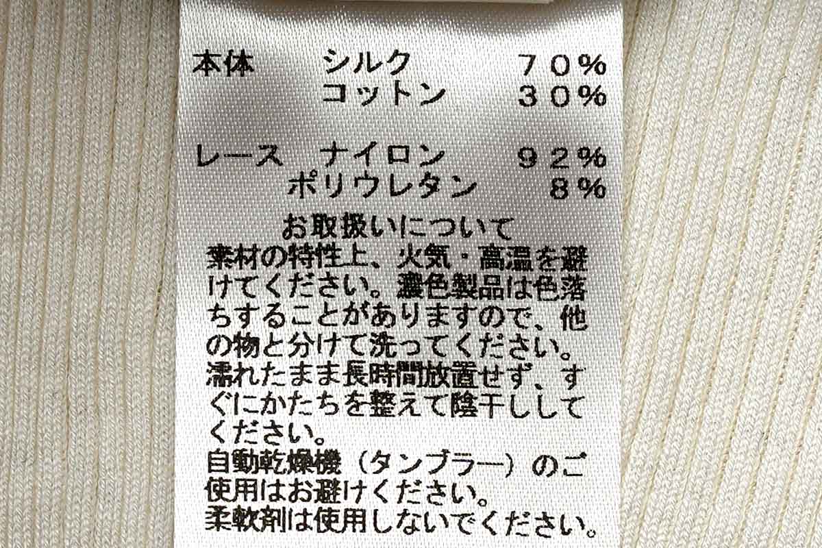 | 素材 | 絹70% 綿30% レース部分/ナイロン92% ポリウレタン8% |