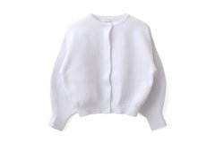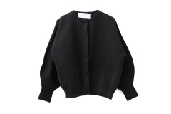 大好評のカーディガン。”AMOSSA”という名前のポリエステル100%の糸を使用した、スポンジのようなボリューム感と高伸縮性があり、柔軟性にも優れた素材。袖を通したときに驚くほど軽いのが特徴です。伸縮性とハリのある素材なのでシルエットが崩れず、着心地も抜群です。程よく厚みがあり、1枚で着ても透けずに着用できるのも嬉しいポイント。ショート丈なので羽織にしたり、ボトムを選ばず合わやすいシルエットです。ボタンを全て留めてプルオーバーのようにお召し頂くのもおすすめ。シンプルなデザインなので、柄物のボトムや、アクセサリー・スカーフなど小物とのコーディネートも楽しめます。