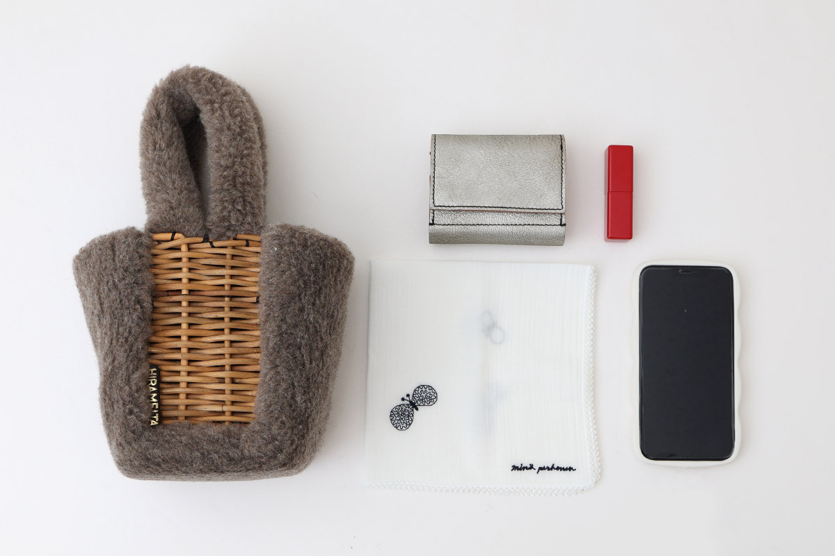 | 商品説明 | 毛100%ボアと紅籐との組み合わせのあたたかみのあるかごバッグ。化学染料等を一切使用していな自然環境に配慮した天然色です。ウサギの耳のような持ち手を手首にかけると暖かいバッグです。お財布、スマホ、ハンカチ、リップを入れてまだ余裕があるサイズ感。 |