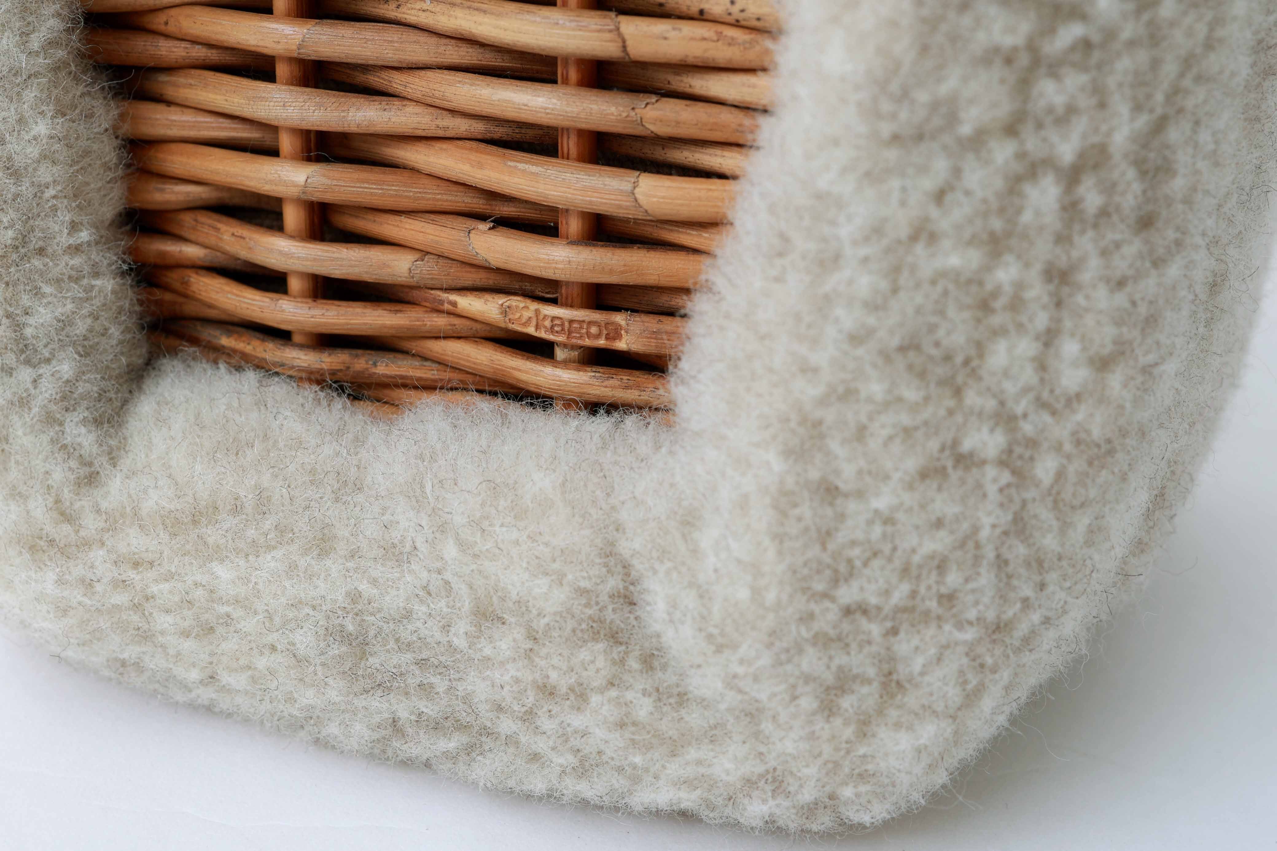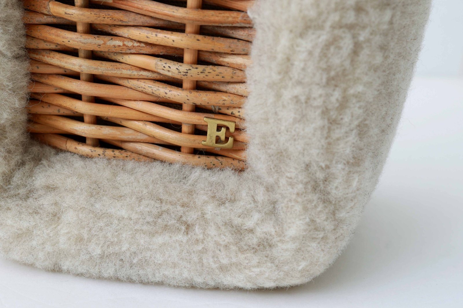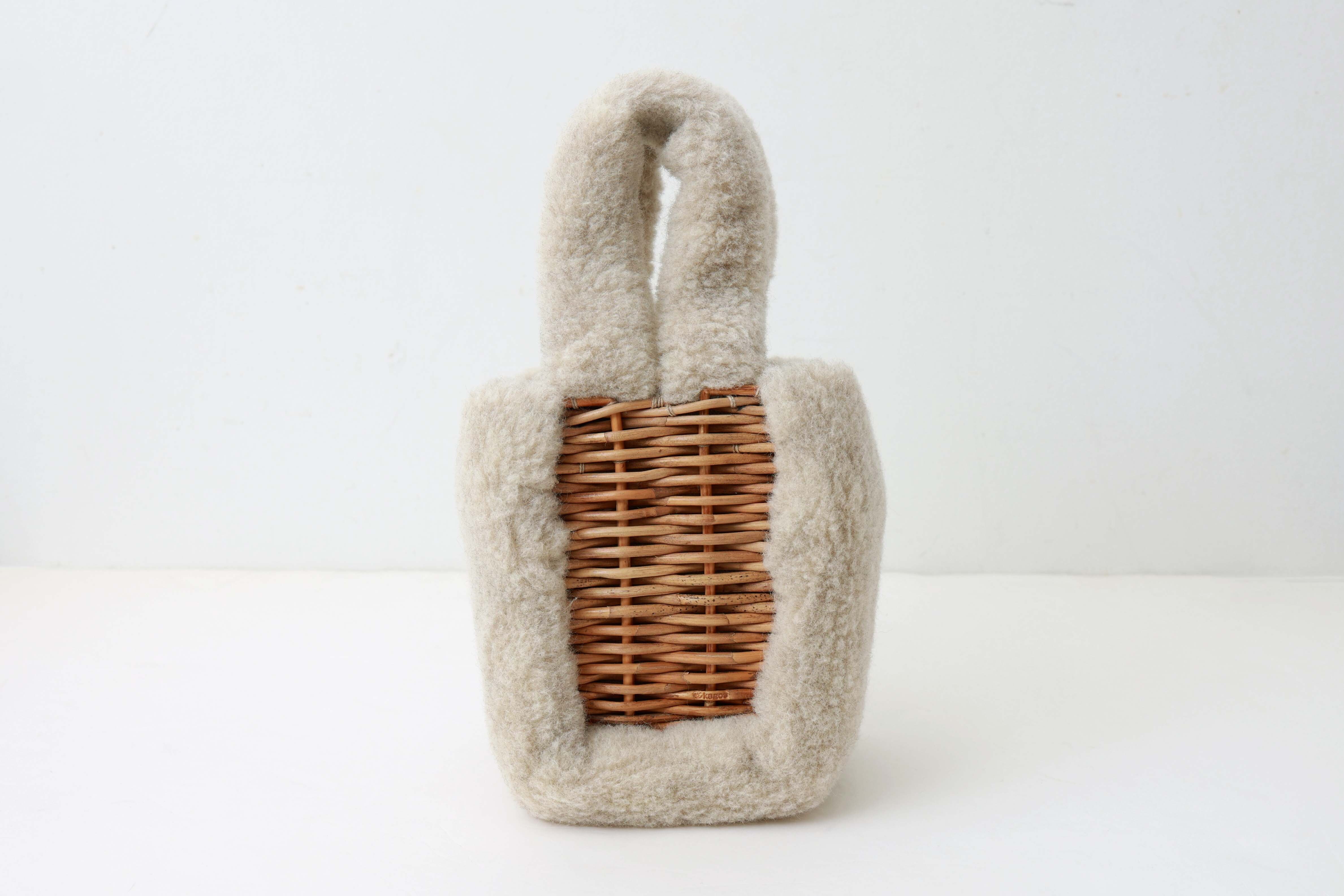 | 商品説明 | 毛100%ボアと紅籐との組み合わせのあたたかみのあるかごバッグ。化学染料等を一切使用していな自然環境に配慮した天然色です。ウサギの耳のような持ち手を手首にかけると暖かいバッグです。お財布、スマホ、ハンカチ、リップを入れてまだ余裕があるサイズ感。 |