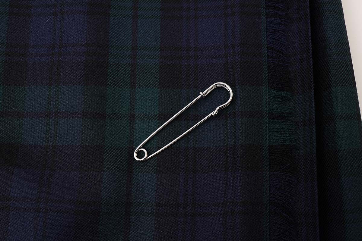 前面はキルトスカート、サイドから後ろにかけてはプリーツ加工が施された巻きスカート。