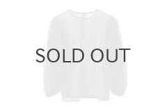ボリュームのある袖が目を惹く華やかなブラウス。小さめのドットのフロッキープリントが上品な雰囲気です。