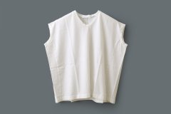 糸を2本どりして編み立てることで適度な厚みと柔らかさがあり、丈夫な作りになっているカットソー。肩を覆い、体のラインが出にくいサイズ感なので、ノースリーブが得意でない方にもお召し頂きやすいシルエット。柔らかな肌触り。一枚ではもちろん、インナーとしてシャツを羽織っての着用もおすすめです。