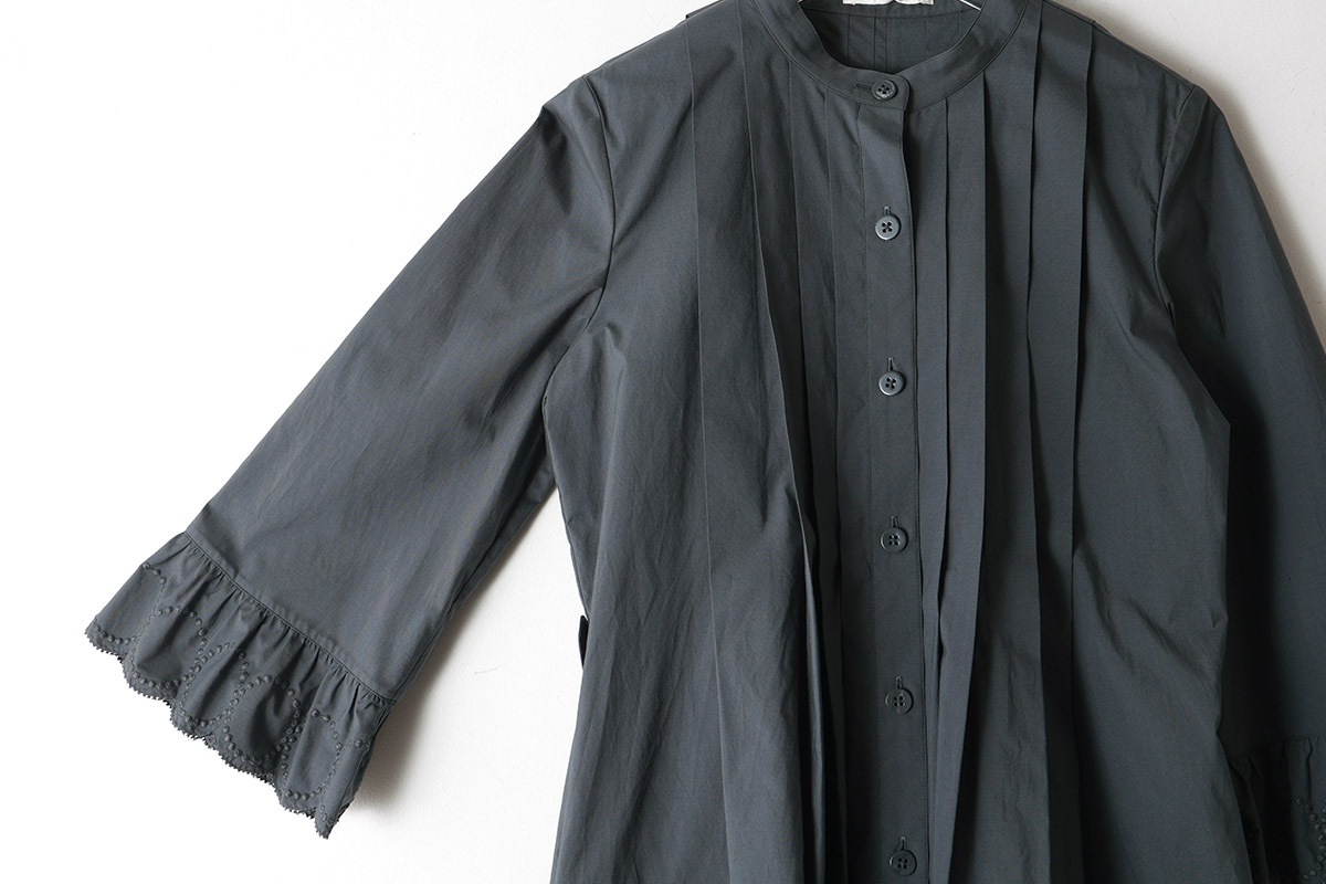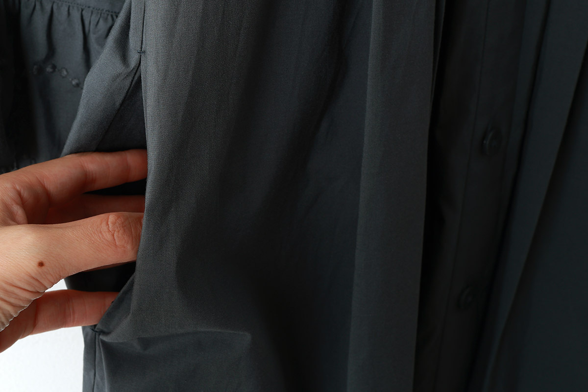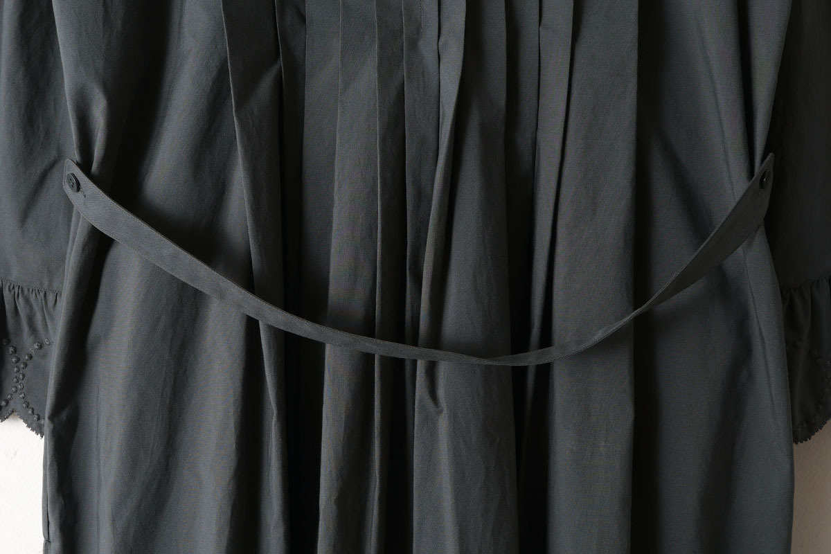 | 商品説明 | 2000年の発表以来、皆様に愛されミナ ペルホネンを代表するテキスタイルとなった“tambourine”。人の手の跡を消さないように表現した不揃いの粒は、不完全なものの美しさや、それぞれの個性をあらわしています。経糸にコットン、緯糸にスパンシルクを使った平織の生地で作られたドレス。スパンシルクは、通常のシルクに比べて伸縮性や柔軟性があり、シルクの光沢と心地よい着心地が魅力です。フロントには細かなタックを寄せ、端正な雰囲気に。袖口には“tambourine”の刺繍生地をレースのようにあしらわれています。前を開けてコートのようにもお召し頂ける一着です。 |