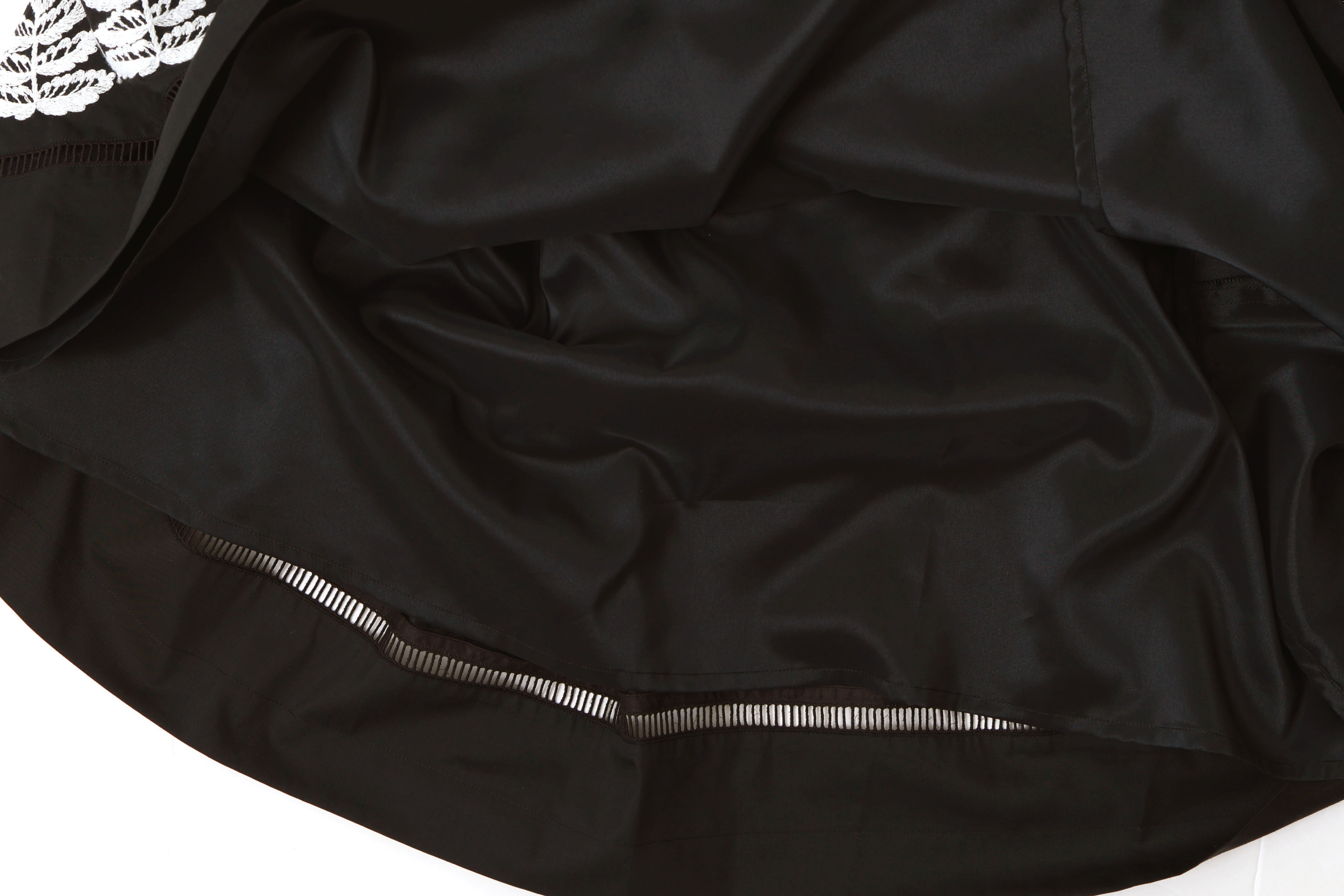 | 商品説明 | 細かなラインで描かれた草花の刺繍が広がる“swing garden(スイング ガーデン)”。満開の花々が、葉や花びらが触れ合うほどぎゅっと身を寄せながら風に揺れています。自然の風景のように、花々が重なる刺繍は、職人の技術と経験によるもの。緻密に描かれたデザインと、刺繍の意匠が融合した華やかな図案です。 ヨーク部分をキルティング加工したクラシカルなシルエットのスカート。裾部には梯子レースを施し、細部までこだわって作られた一着です。上質なシルクコットン地は軽やかで着心地も良く、ほのかな光沢がシックなコーディネートにも馴染みます。 |