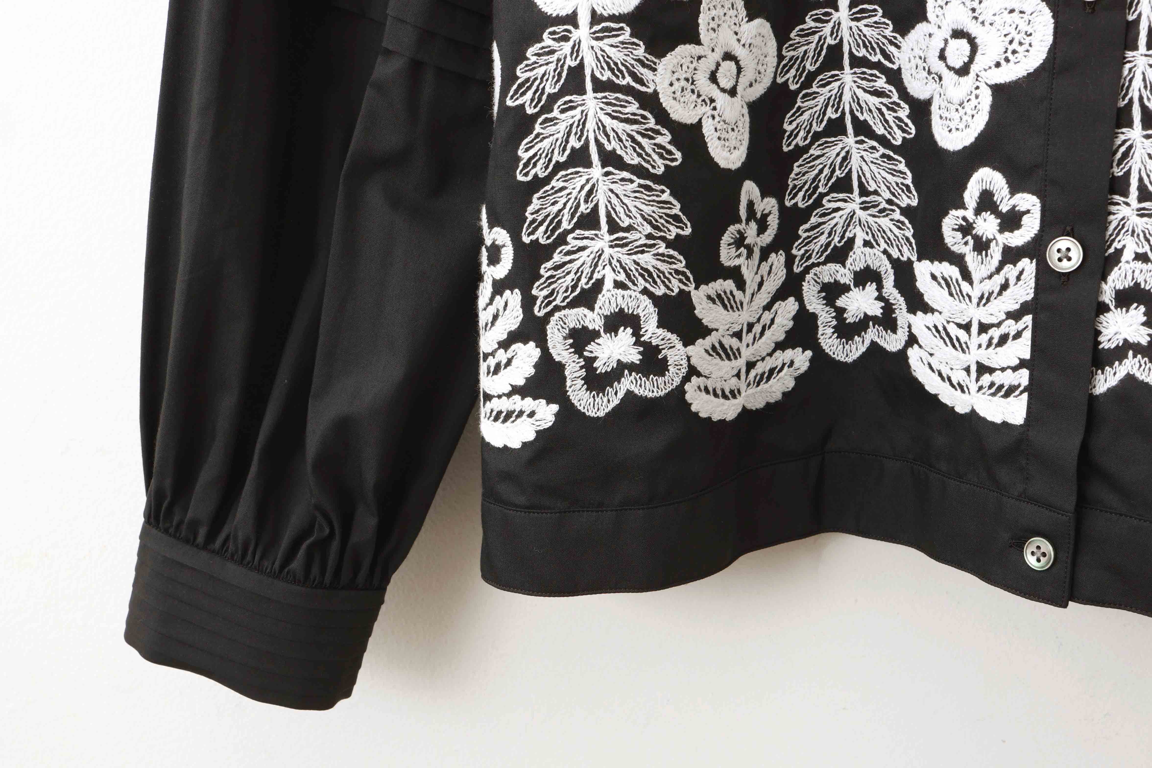 | 商品説明 | 細かなラインで描かれた草花の刺繍が広がる“swing garden(スイング ガーデン)”。満開の花々が、葉や花びらが触れ合うほどぎゅっと身を寄せながら風に揺れています。自然の風景のように、花々が重なる刺繍表現は、職人の技術と経験によるもの。緻密に描かれたデザインと、刺繍の意匠が融合した華やかな図案です。 肘とカフス部分に細かなタックが入り、袖にボリュームがあるブラウス。襟元のフリルがかわいらしいアイテムです。 |