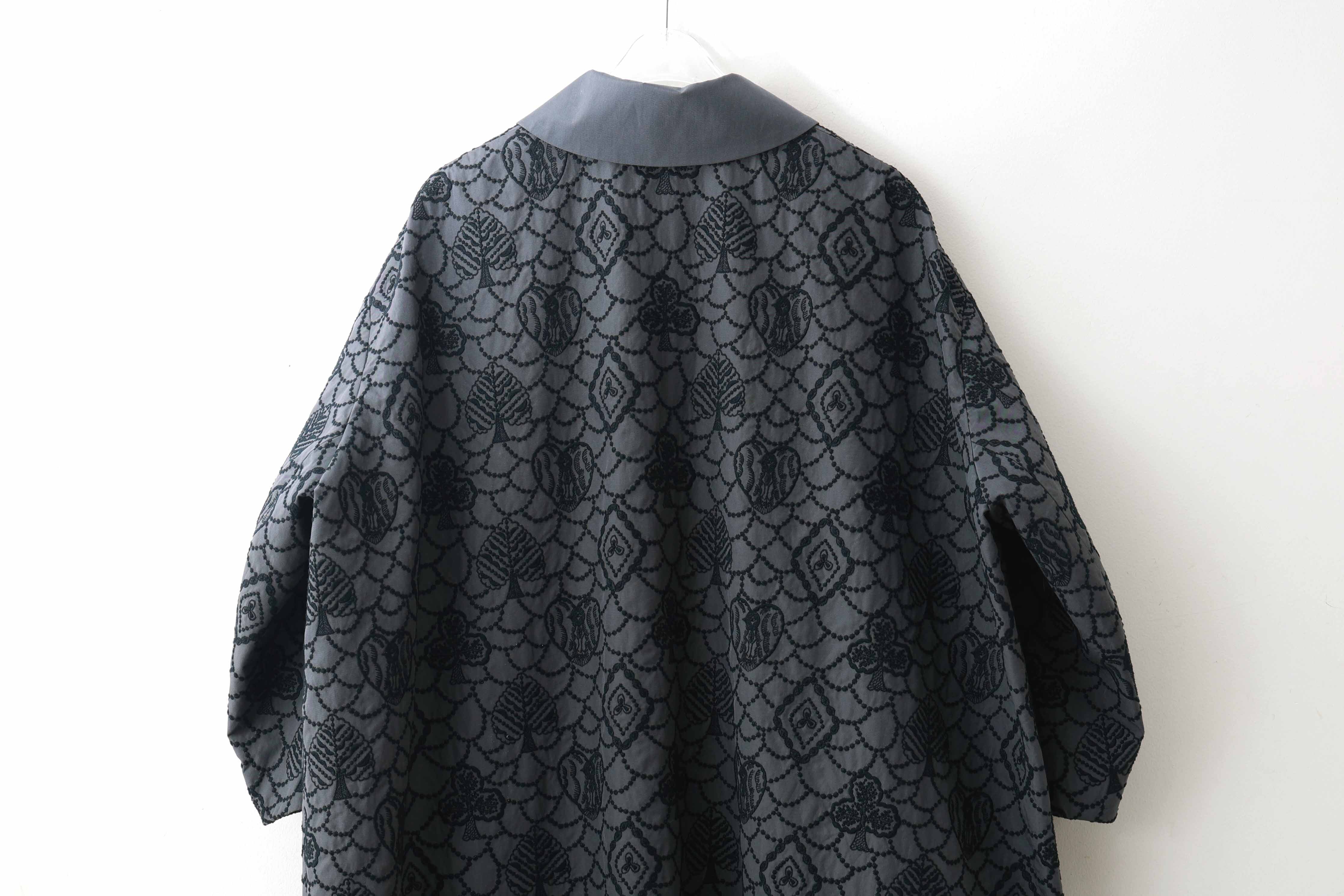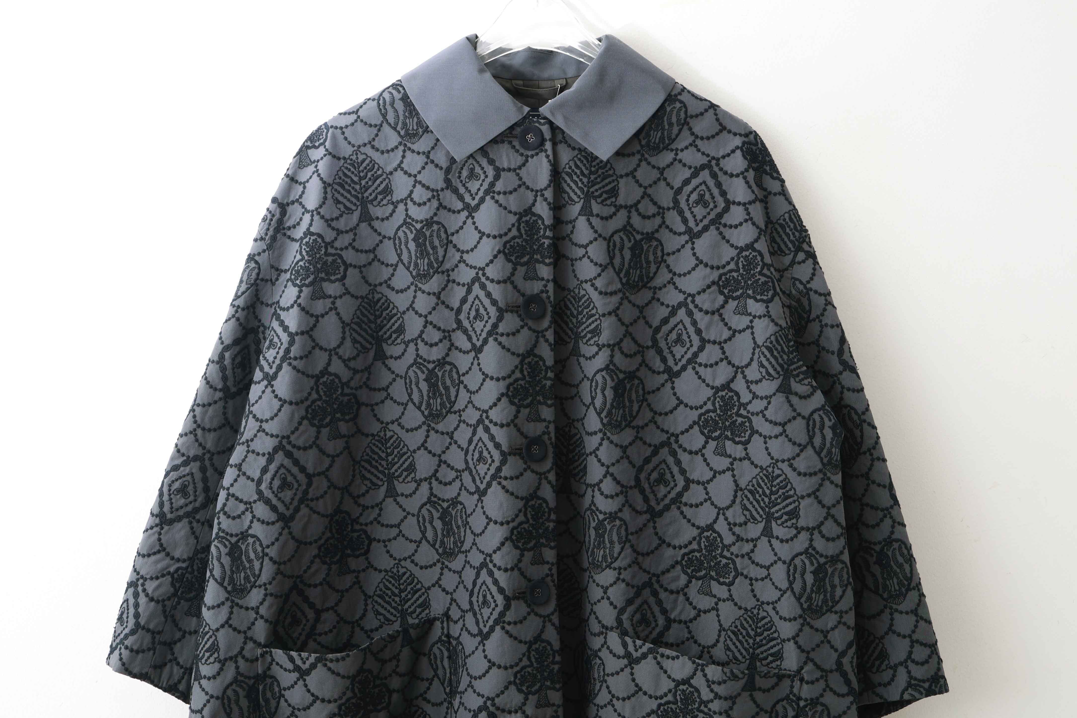 | 商品説明 | トランプのモチーフに森の情景を映した“forest card(フォレスト カード)”。アイコニックなフォルムの中に、別世界が広がっているような、幻想的な雰囲気が漂うデザインです。 経糸にフィラメントシルク、緯糸コットン糸を使用した生地に刺繍を浮かべたコート。ナチュラルでありながら上品な光沢感を持つダブル平織組織の生地は、天然素材ならではの風合いを感じさせつつ、フィラメントシルクの華やかな光沢が優しく広がります。上質な生地の表情が活きる、すっきりとしたデザインです。 |