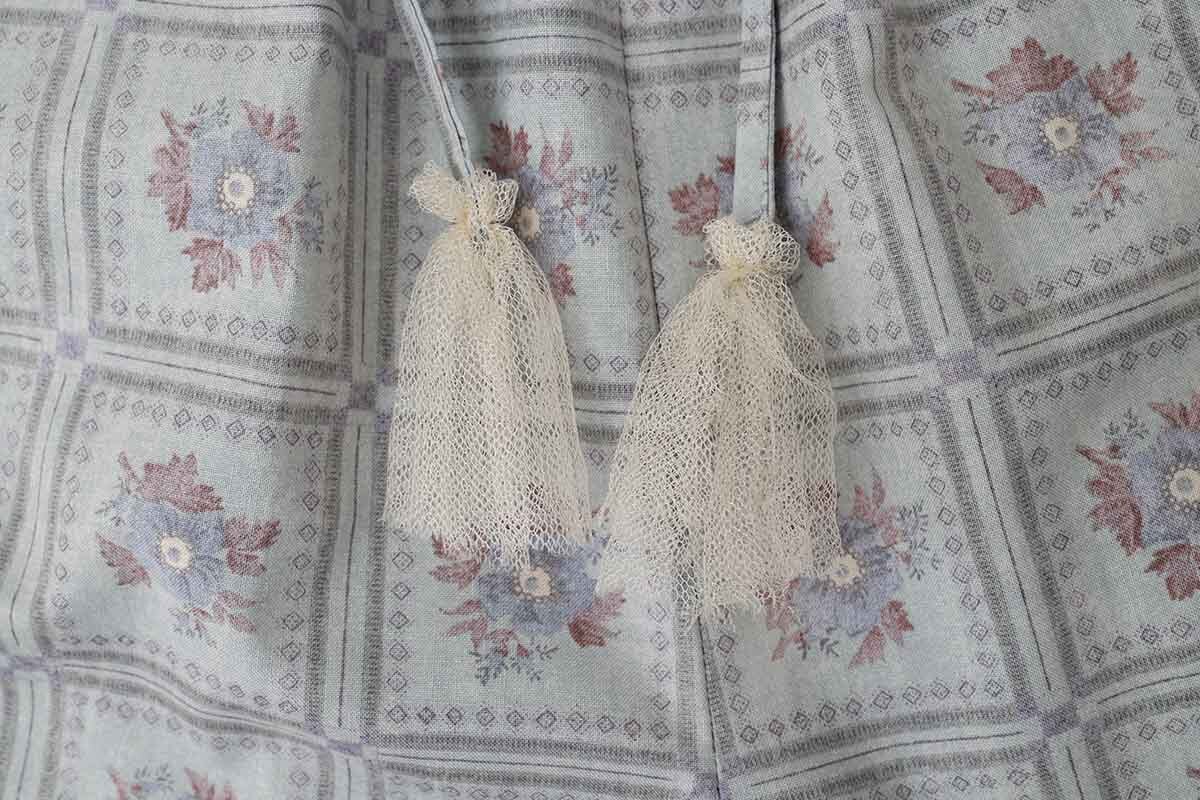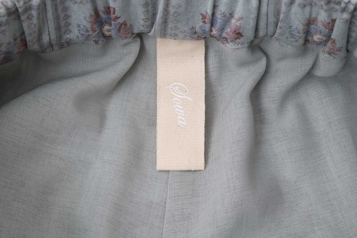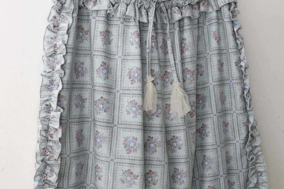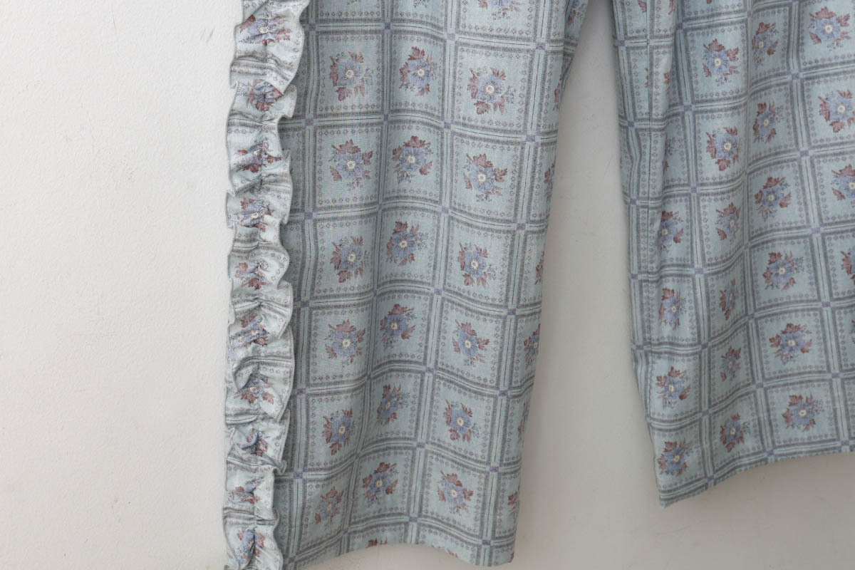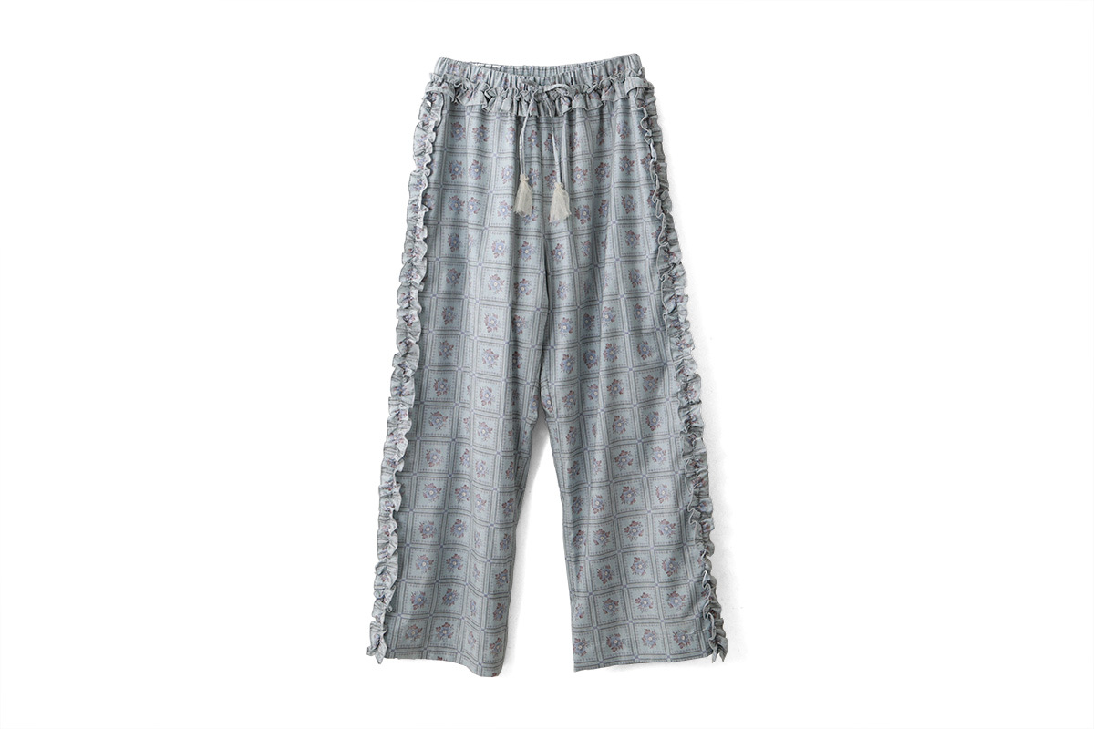 サイドやバックポケットにあしらわれたラッフルがかわいい格子とお花柄のパンツ。紐先のチュールがSOWAらしいこだわりが感じられます。両ポケット付き。