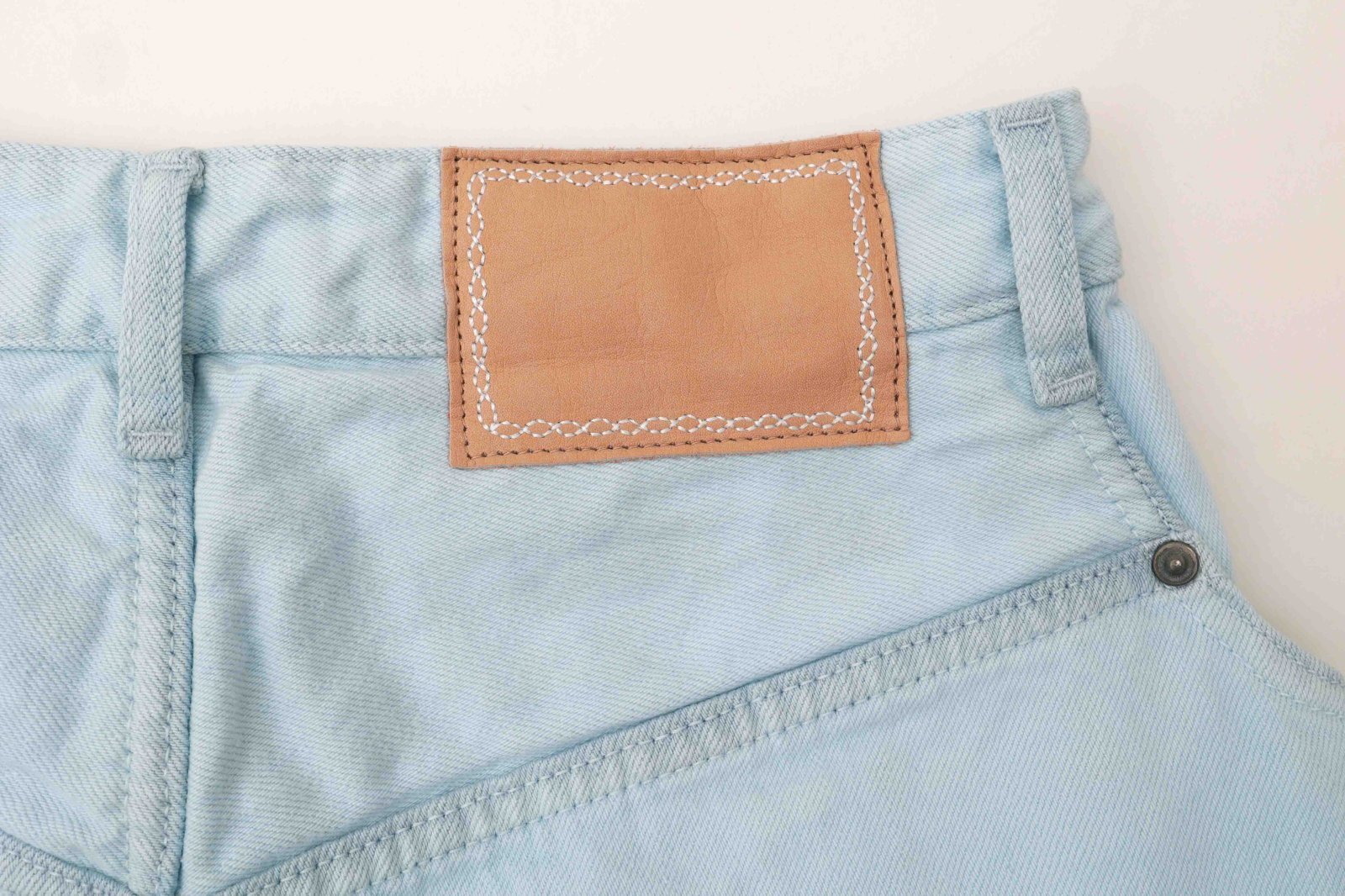 ※1 | 牛革ラベル使用製品です。後ろのベルトに淡い色の革ラベルが付いております。お洗濯や水に濡れた際、革に色移りし、最初は特に革ラベルの色に変化があります。ご着用やお洗濯を繰り返すことにより、革の色や質感に味わいが出て、洗うたびに変化するデニムの風合いに徐々に馴染んでいきます。 |