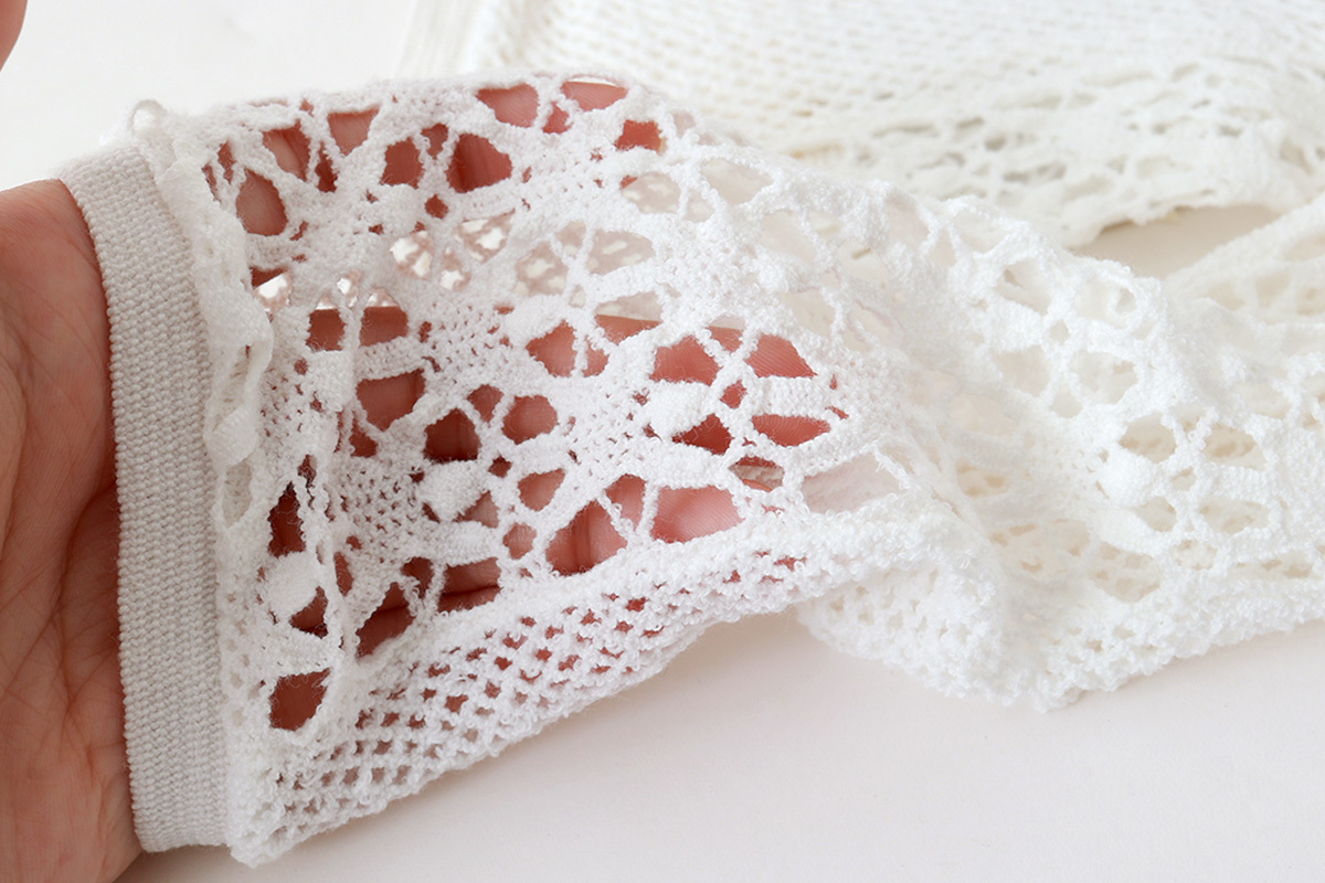 足の甲部分にあしらわれたフラワー柄が印象的なニットソックス。甘すぎないレースはシンプルになりがちな春夏シーズンのコーディネートのアクセントになりそう。