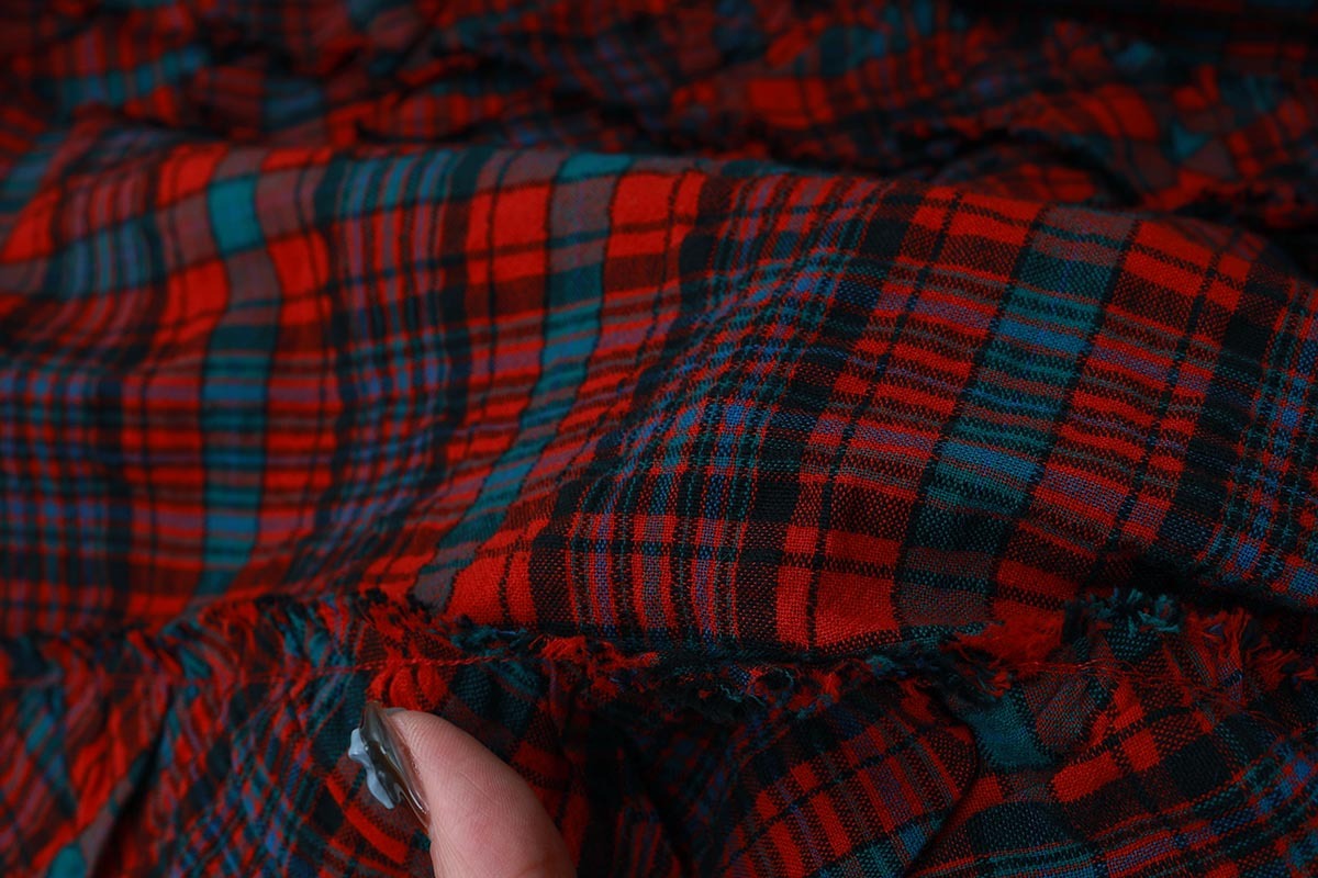 くしゅくしゅとした表面感がかわいいヘリンボンシャーリングチェック。