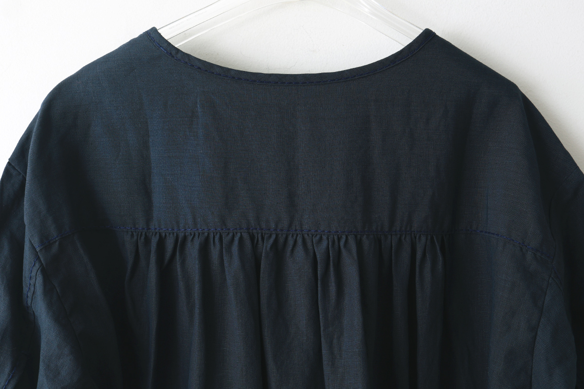 リネン本来の張り感と、くたっとした柔らかさが程よい素材のワンピース。