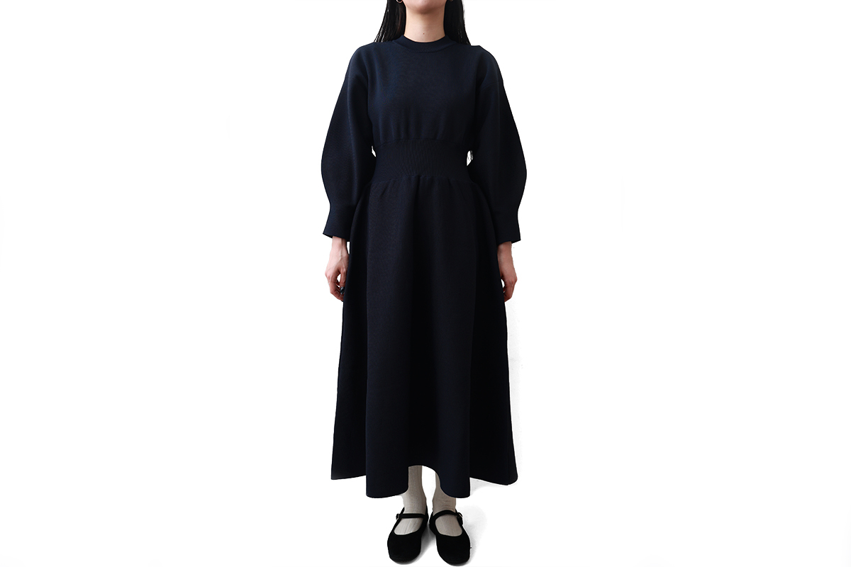 以前のAMOSSAワンピースはIラインシルエットでしたが、今回はフレアータイプにしてキャズエドゥミ別注でお作りいただきました。