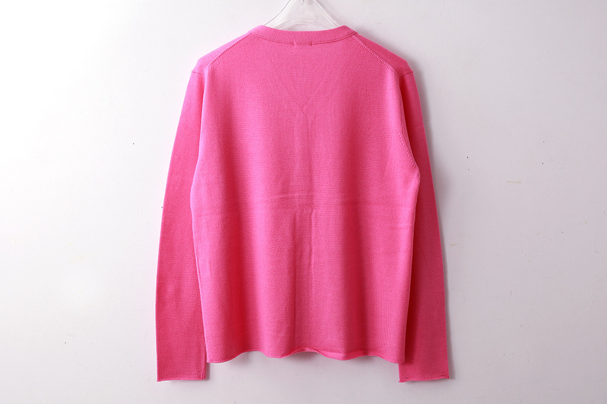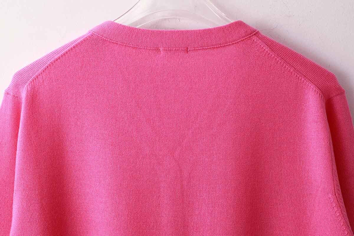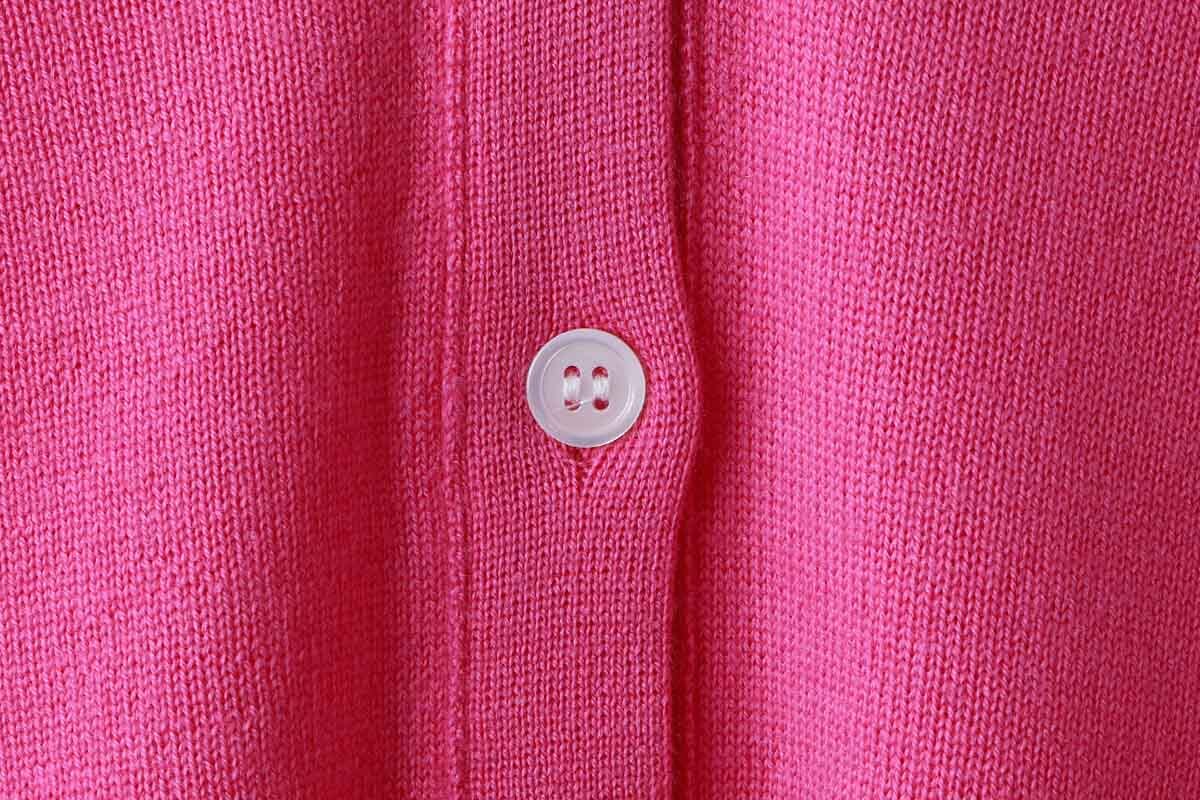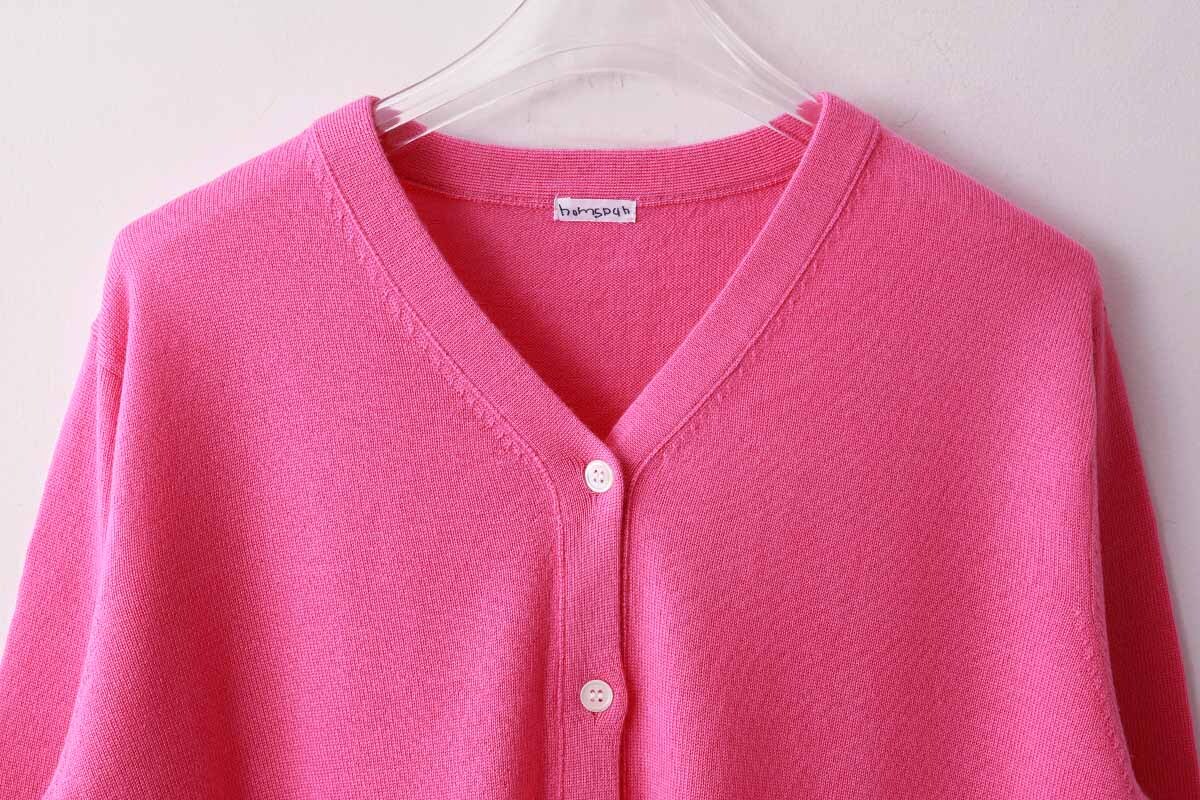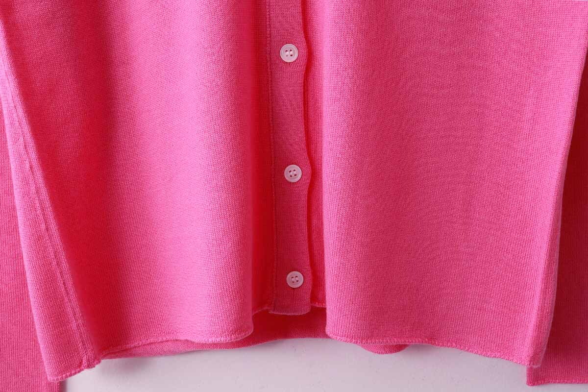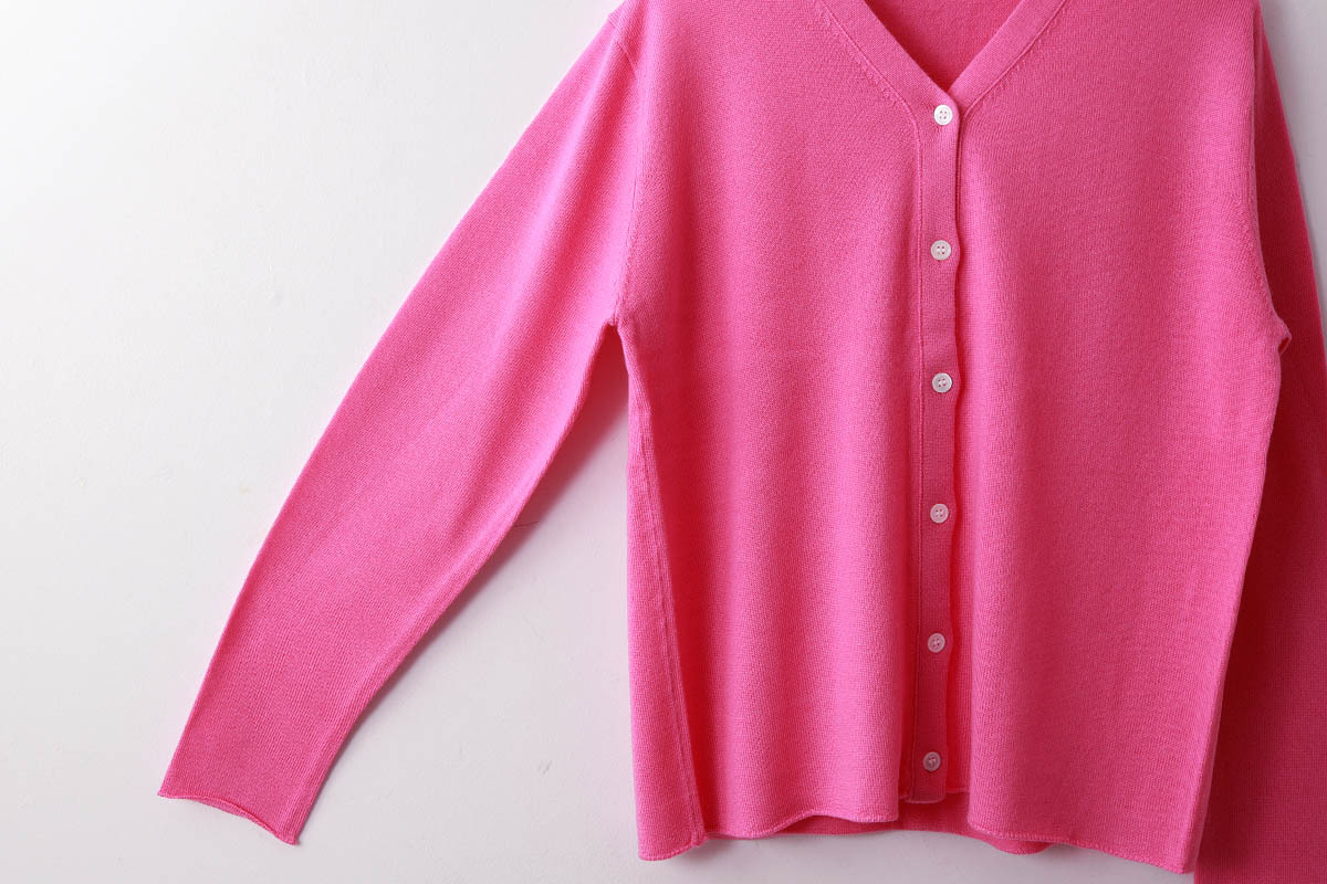 毛羽の少ない細かめの糸で編まれたVネックカーディガン。