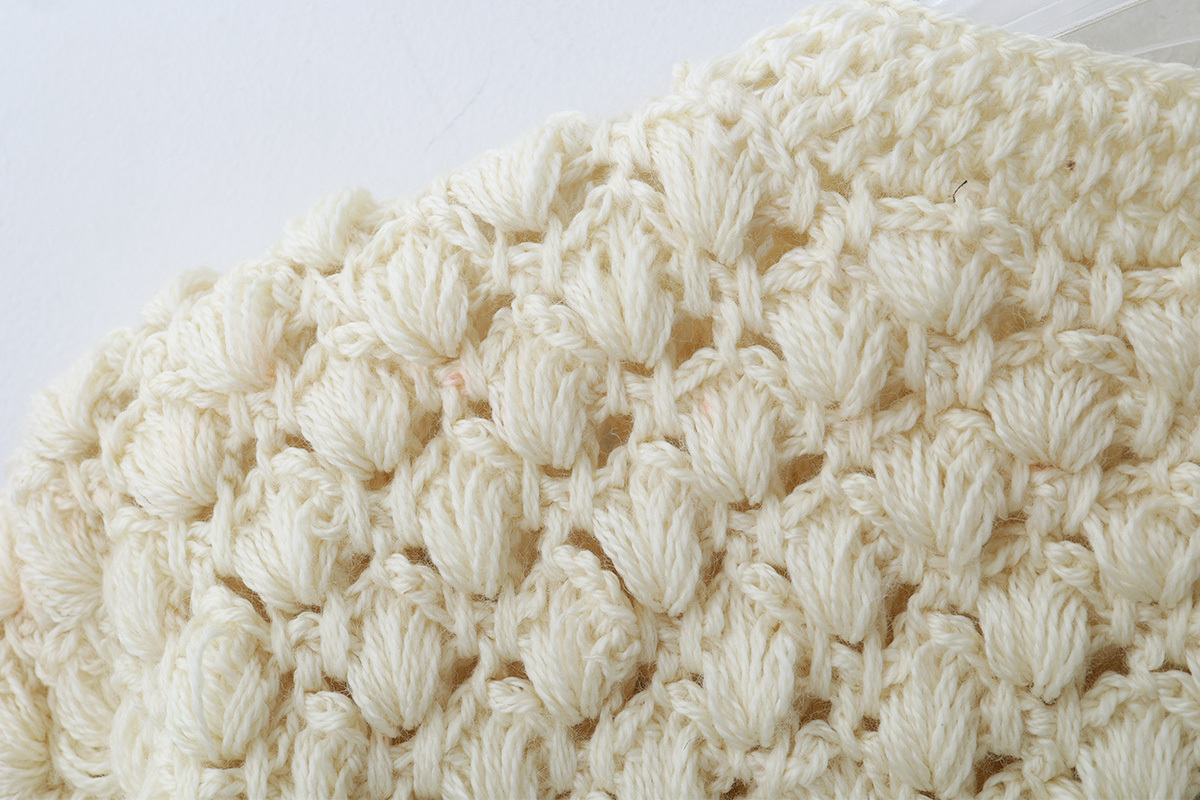 | ※2 | ハンドニットのため、ラフな仕上がりとなっております。糸端が出ている箇所や赤い糸混じりがある場合がございますが、ハンドニットの特徴となります。ハンドニットの風合いをお楽しみくださいませ。 |