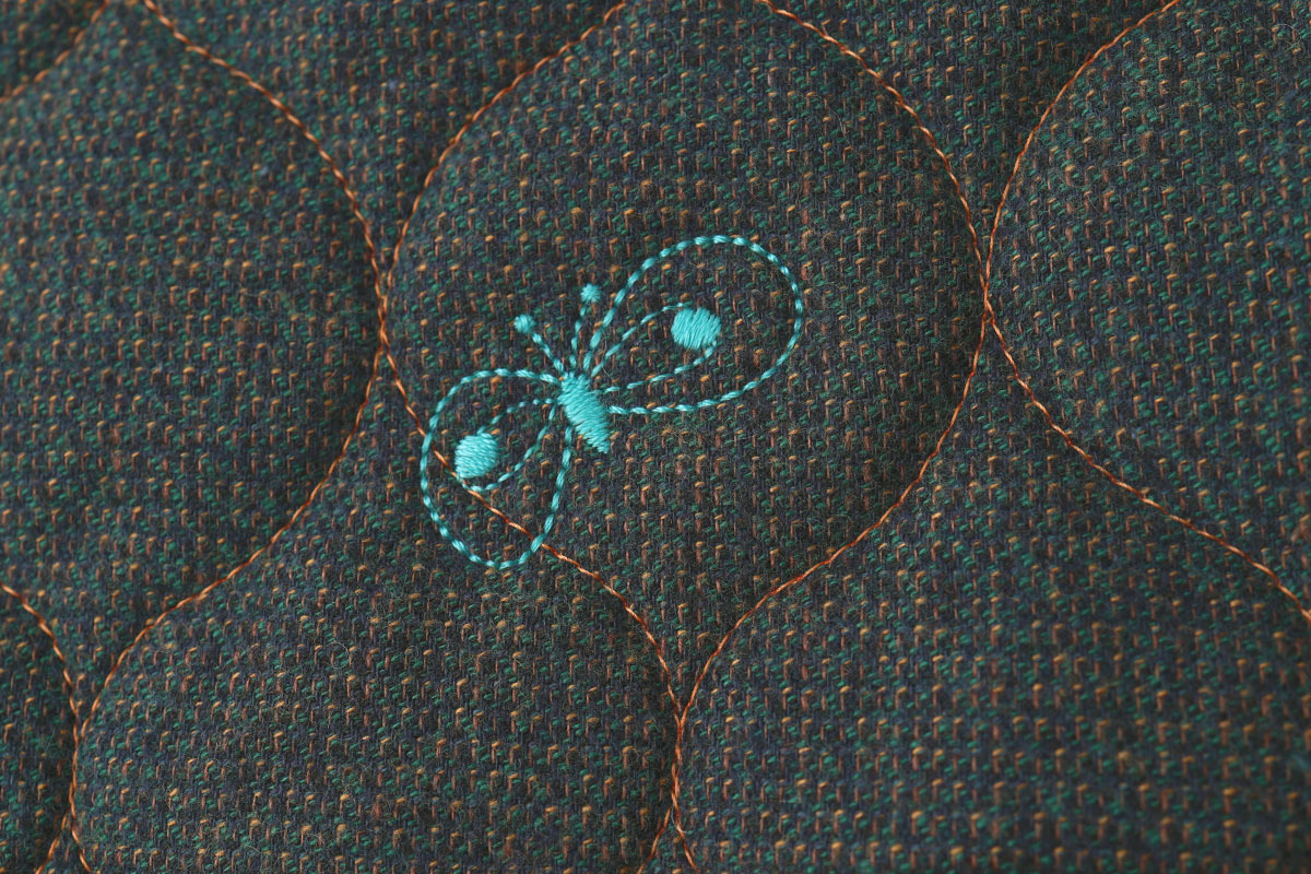 | 素材 | 表生地/綿70% 麻30% 下糸/ポリエステル100% 刺繍部分/上糸 キュプラ100% 下糸 ポリエステル100% 中綿/ポリエステル100% 裏生地/綿100% |