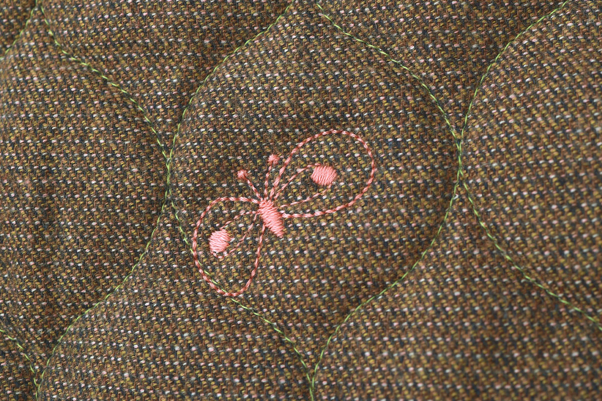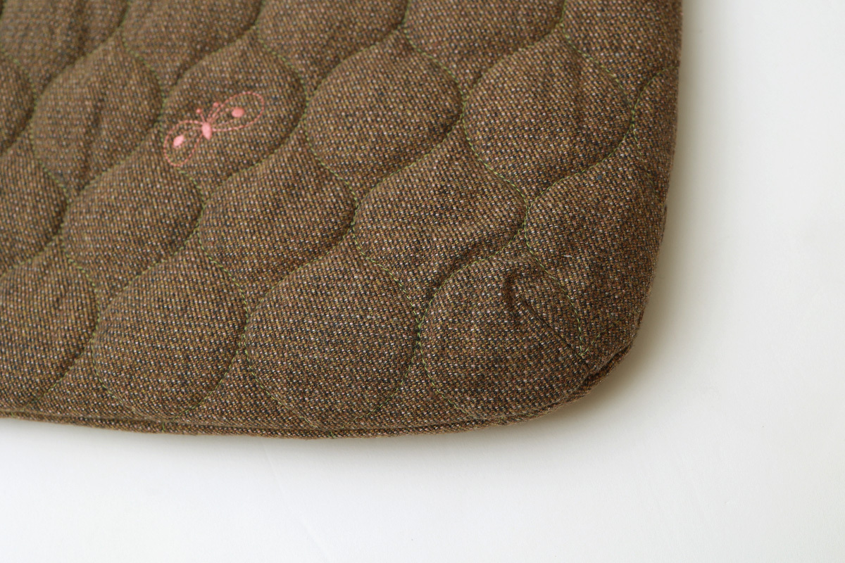 | 素材 | 表生地/綿70% 麻30% 下糸/ポリエステル100% 刺繍部分/上糸 キュプラ100% 下糸 ポリエステル100% 中綿/ポリエステル100% 裏生地/綿100% |