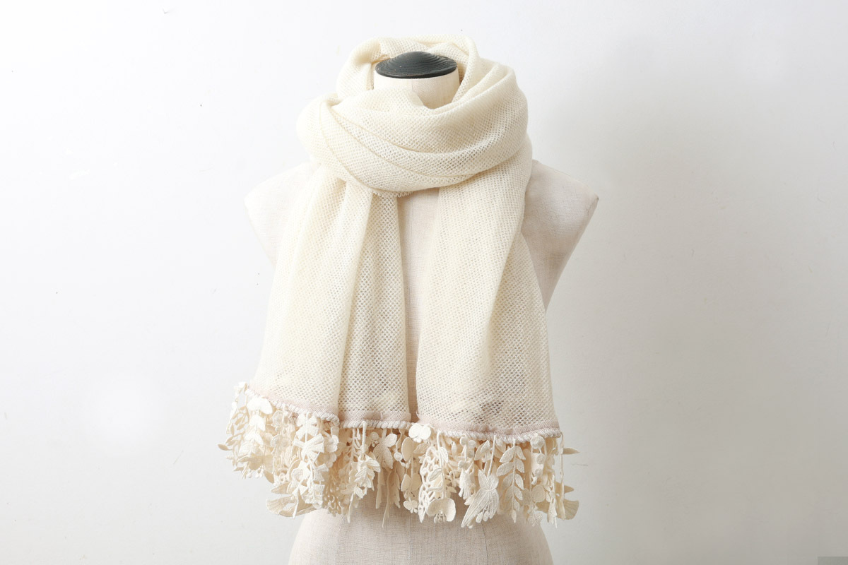 | 商品説明 | 上質なカシミヤをメッシュ状に織り上げられた、軽やかな風合いのストール。 ふんわりとやわらかく、暖かな空気をまとうような心地よさが魅力です。両端には“forest parade(フォレスト パレード)”のレースが物語を紡ぐように連なり、装いをエレガントに彩ります。 |