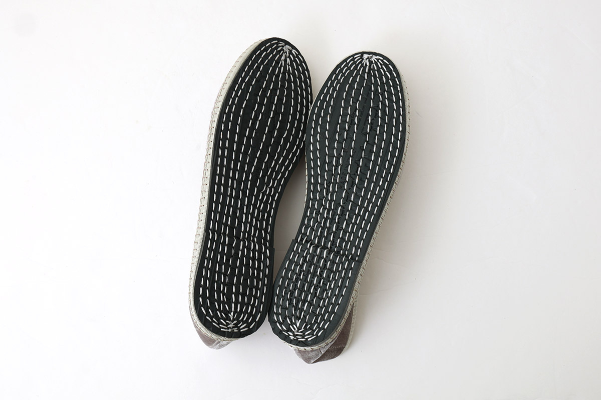Sciusciàの靴は、イタリア・フリウーリ地方の靴職人が手作業で作っています。現在この技術を習得している職人はごくわずか、1日に作ることができる靴は20足程度、製靴の過程で環境にアレルギー反応が出ないよう、全て接着剤を使わずに仕上げています。底面の特徴的なステッチは職人たちの高い技術への表れでもあります。またソール部分はフォームラバーが内蔵されていて、履き心地も抜群。伝統的な手法で作られたSciusciàの靴は、普段づかいはもちろん、ドレスアップした足もとにもぴったり、環境に優しく、さらにアレルギーの可能性も最小限に抑えられているため、お子さまからお年寄りまで幅広く楽しめるサスティナブルなシューズブランドです。