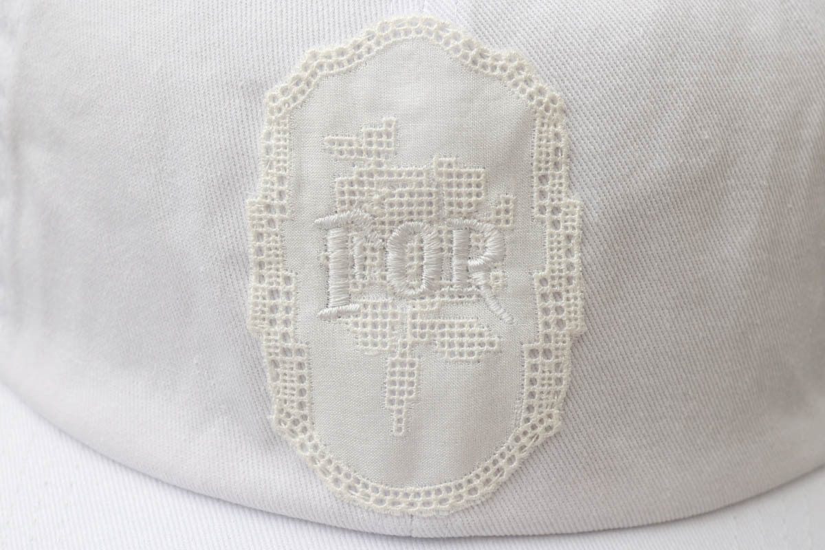 『FOR LOVE』というシンプルなメッセージを込められたキャップ。フロントには繊細なレースモチーフを丁寧に縫い付けられていて、その上に『FOR』のロゴが刺繍で施されています。