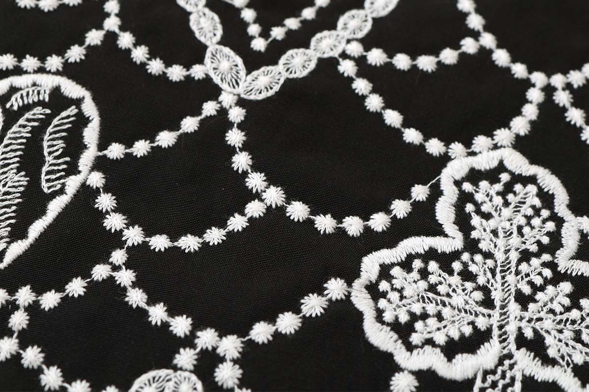 | 素材 | 絹55% 綿45% 刺繍部分/上糸 綿100% 下糸 ポリエステル100% 別布部分/ポリエステル80% ポリウレタン20% 裏生地/ポリエステル100% |
