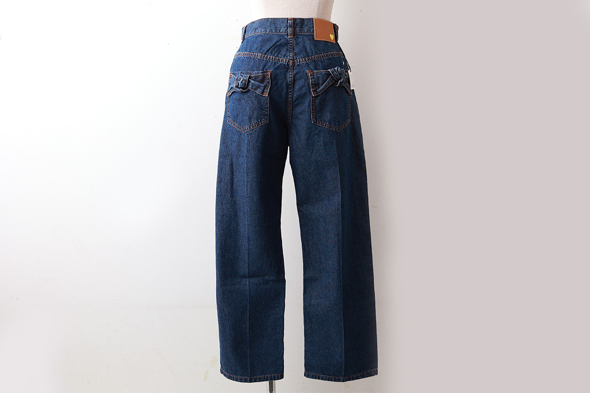 センタープレスでスッキリと履いていただけるデニムパンツ。センタープレス部分に洗いがかけられていることで、より立体的なシルエットに仕上げられています。リボンのバックポケットがポイント。
