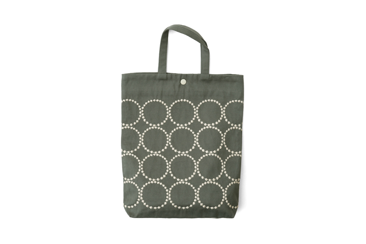 商品説明 | ブランドを象徴するテキスタイルのひとつ“tambourine(タンバリン)”。人の手の跡を消さないように表現した不揃いの粒は、不完全なものの美しさや、それぞれの個性をあらわしています。超長綿を使用したツイル生地に、起毛加工を施した素材のトートバッグバッグ。しっかりとしたハリ感のある生地に、上品な光沢が浮かびます。 「kanssa toté(カンサ トート)」は、フィンランド語で「一緒に」を意味する言葉から名づけられたバッグ。小さな手にそっとなじみ、毎日にやさしく寄り添ってくれるようなアイテムです。 |
