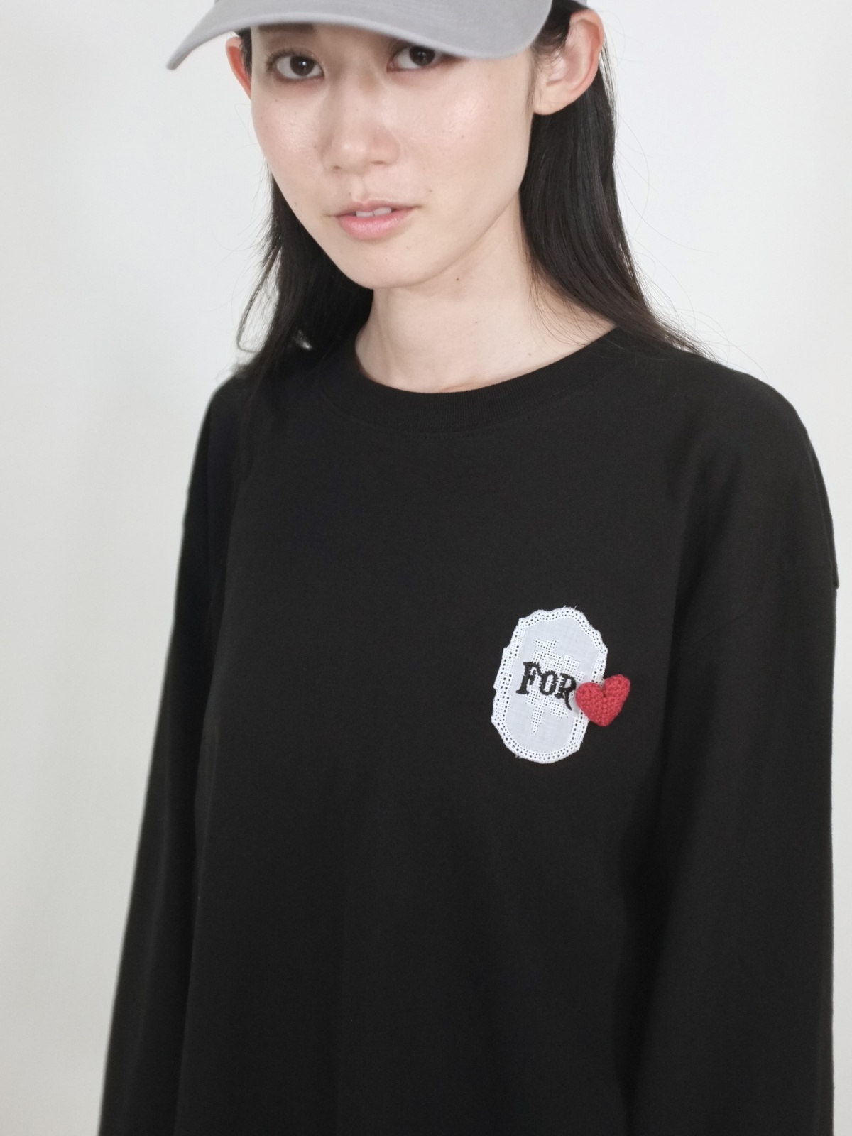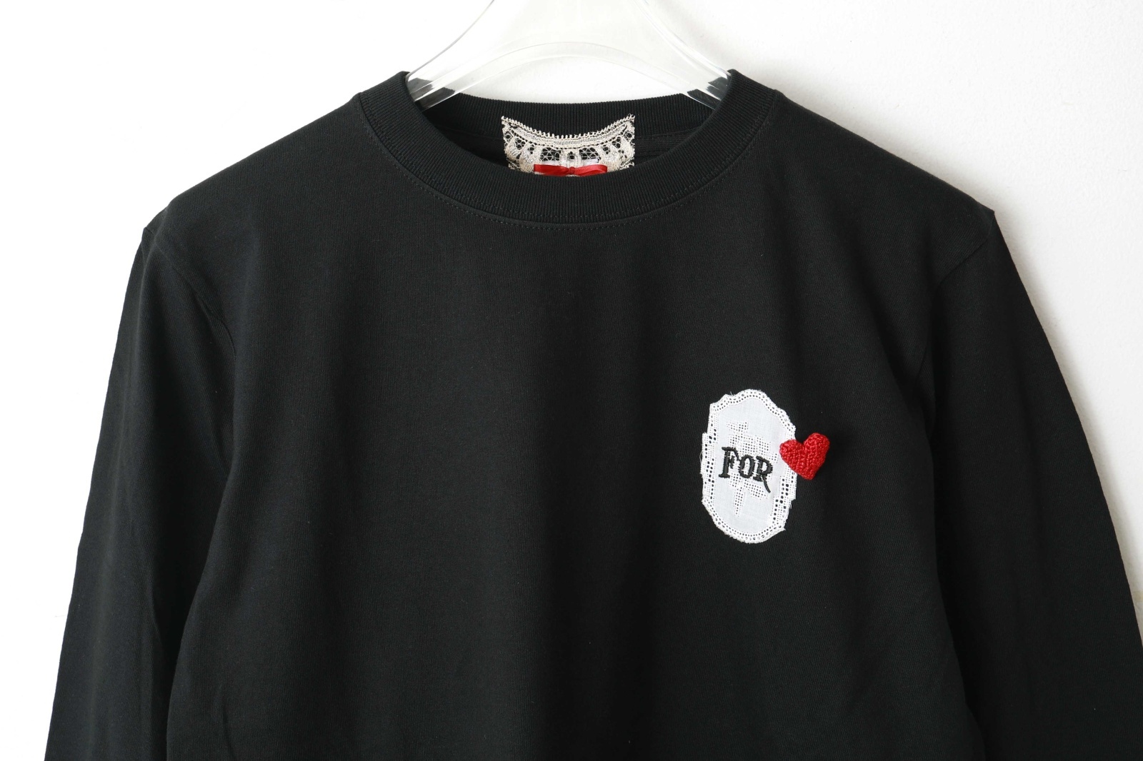 long sleeve T-shirt w/Heart brooch (BK) [FOR flowers of romance]