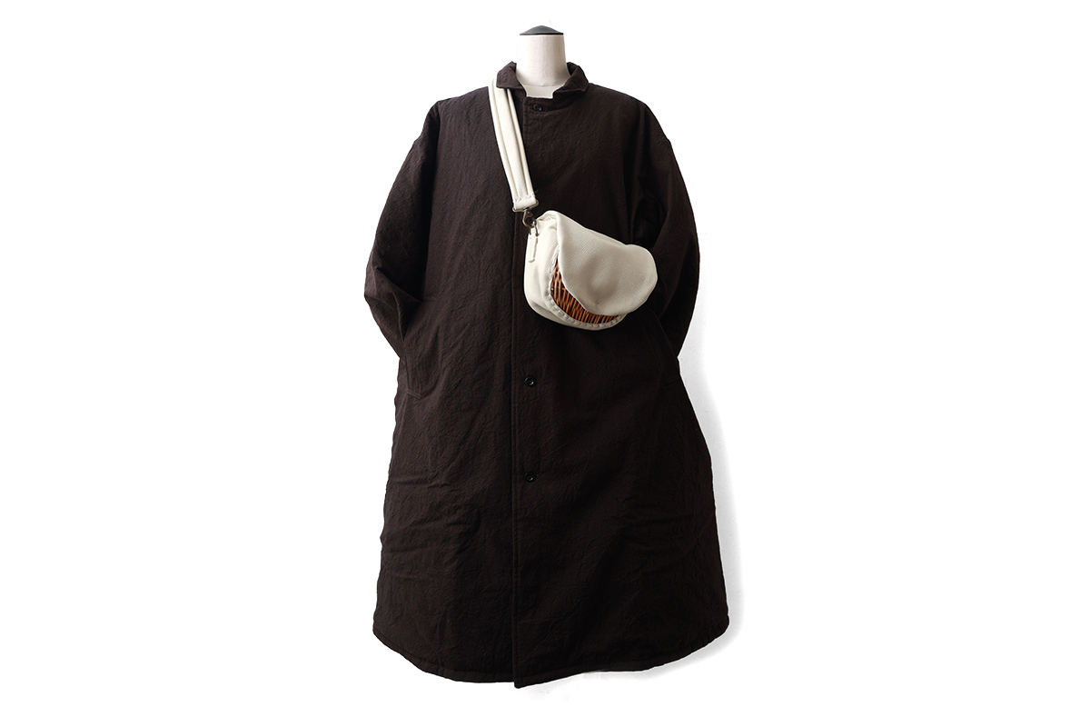 Yarmo秋冬の定番のQuilting Lab Coat。 表地にはナチュラルな表情のハリ感のある綿麻素材を、裏には艶感のあるキルティングが使用されています。