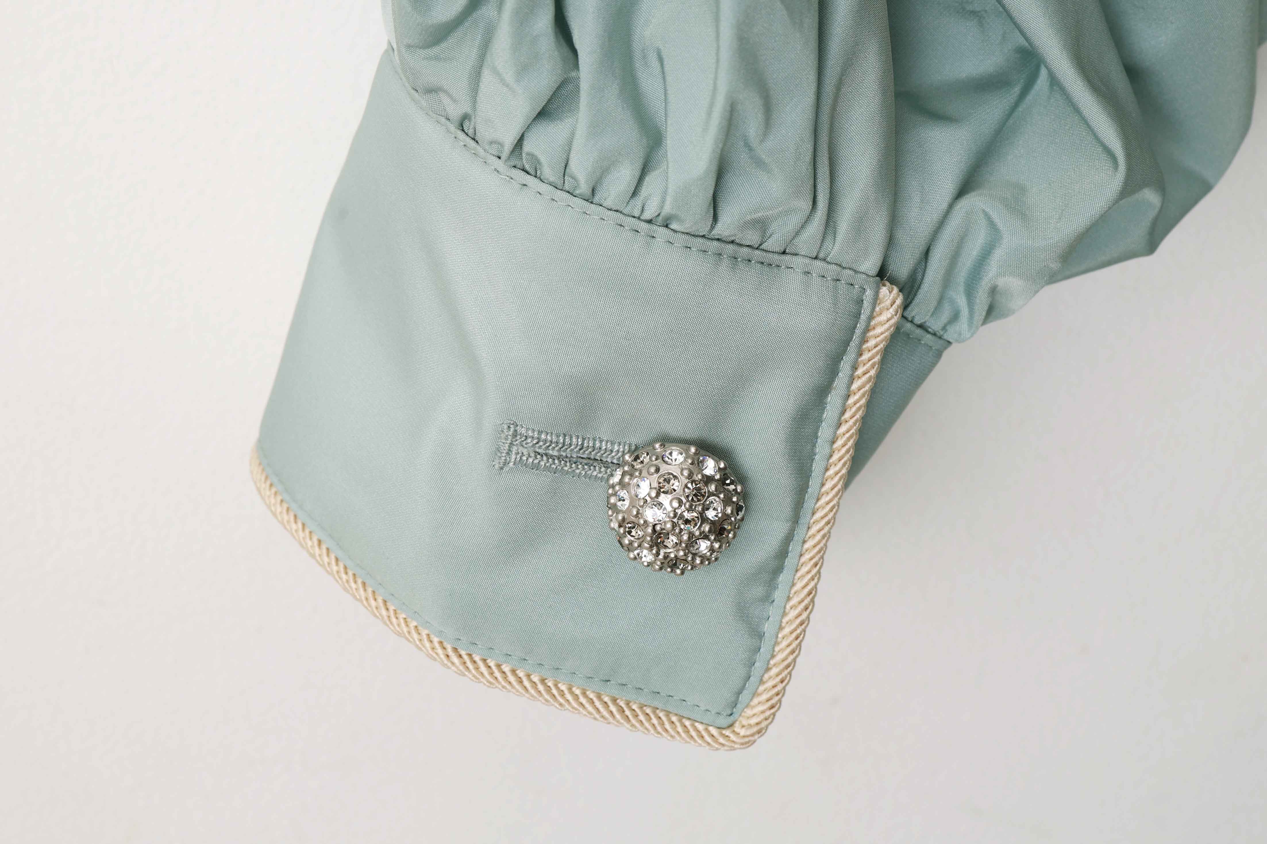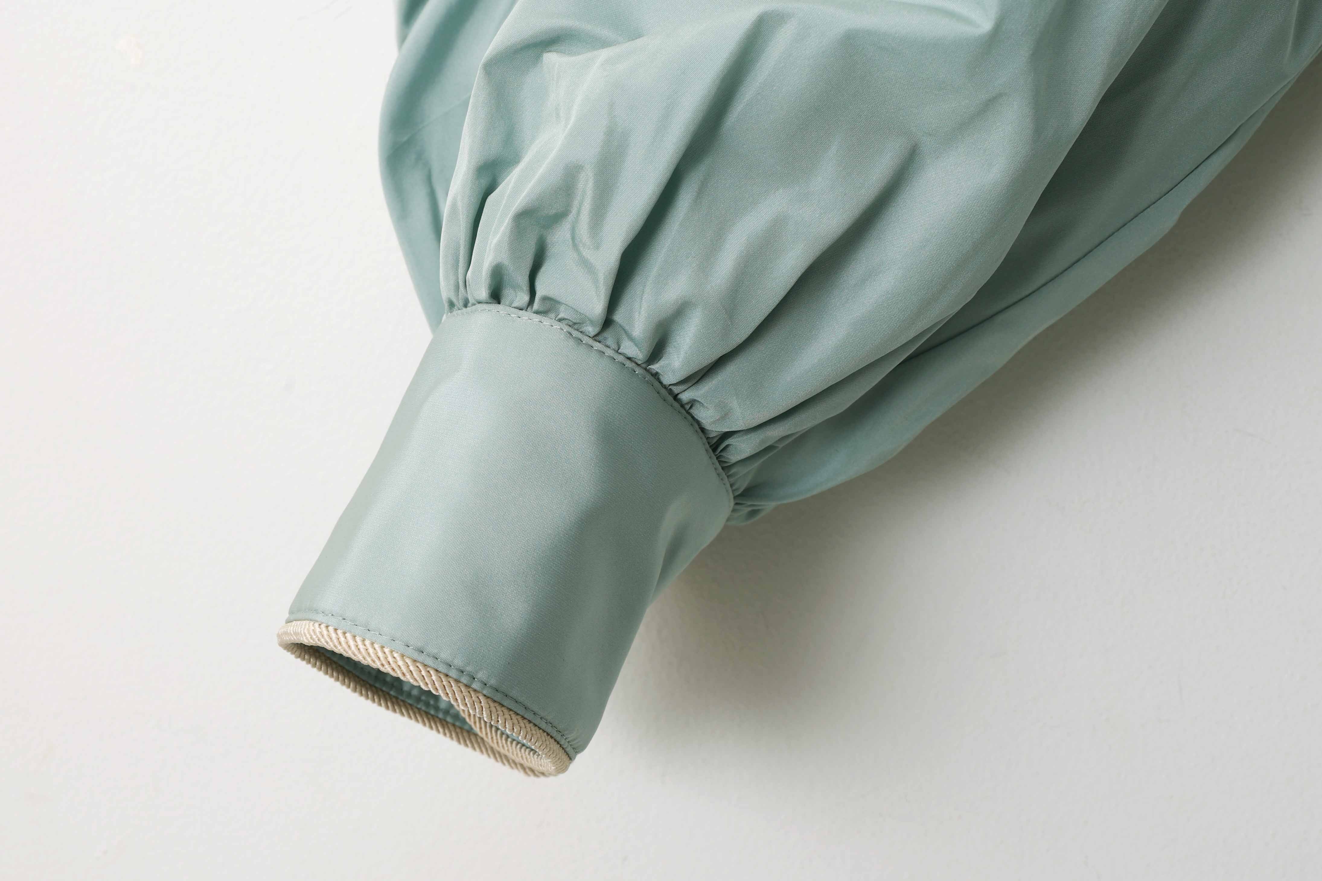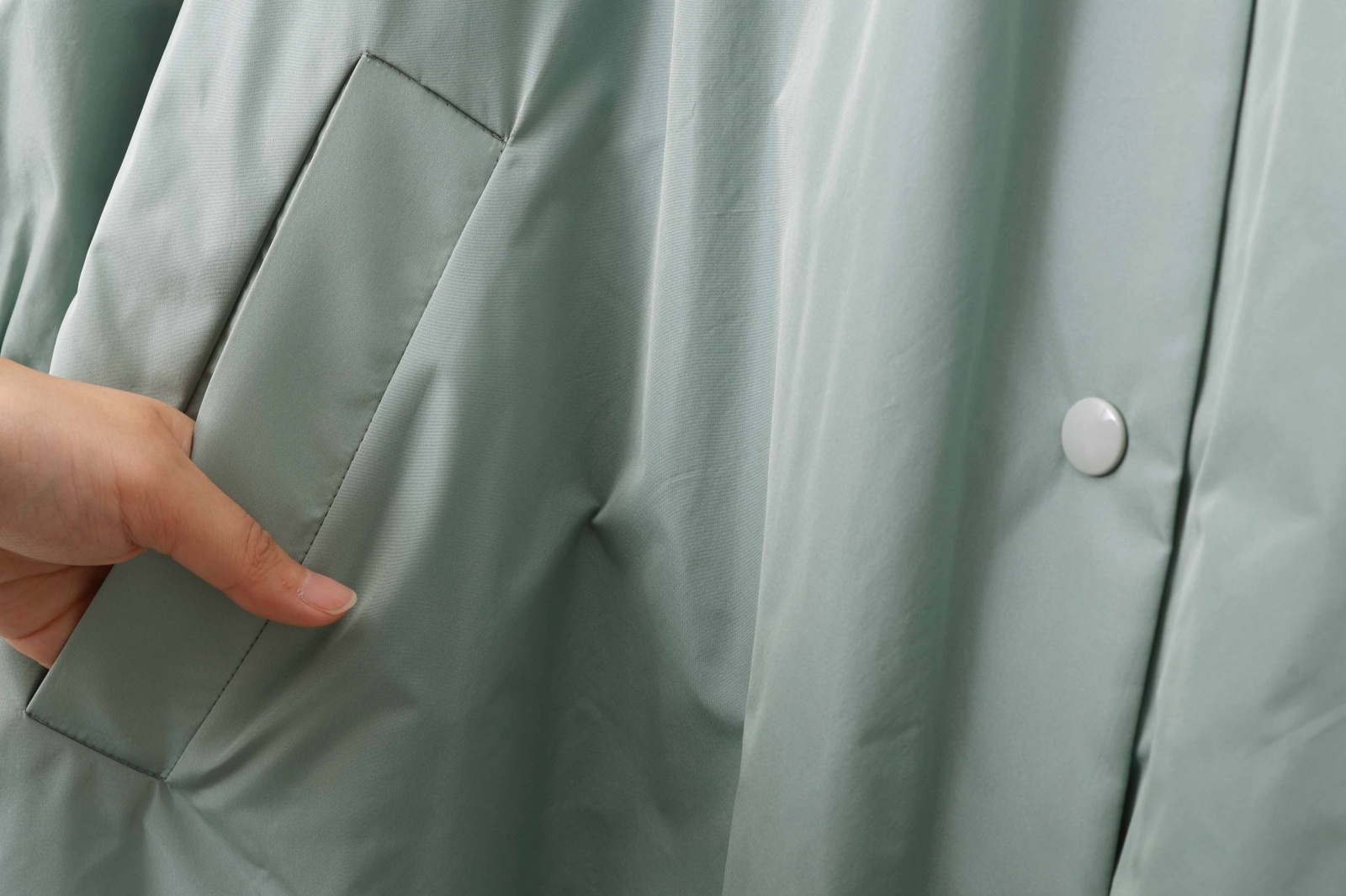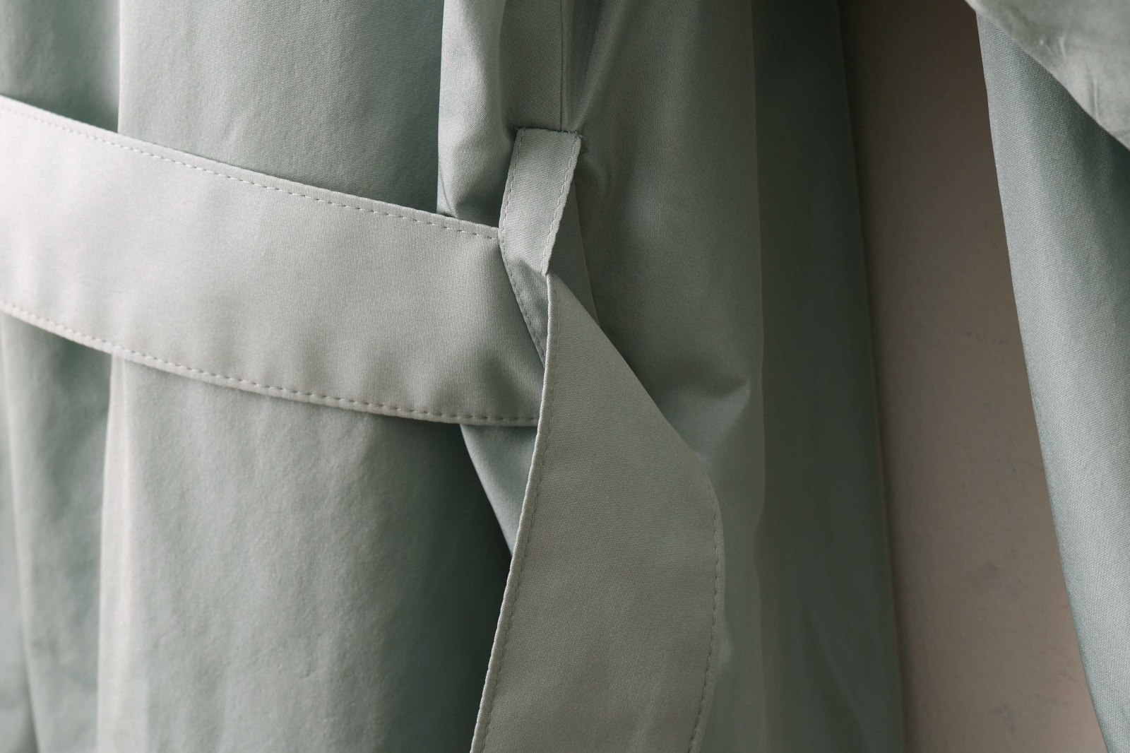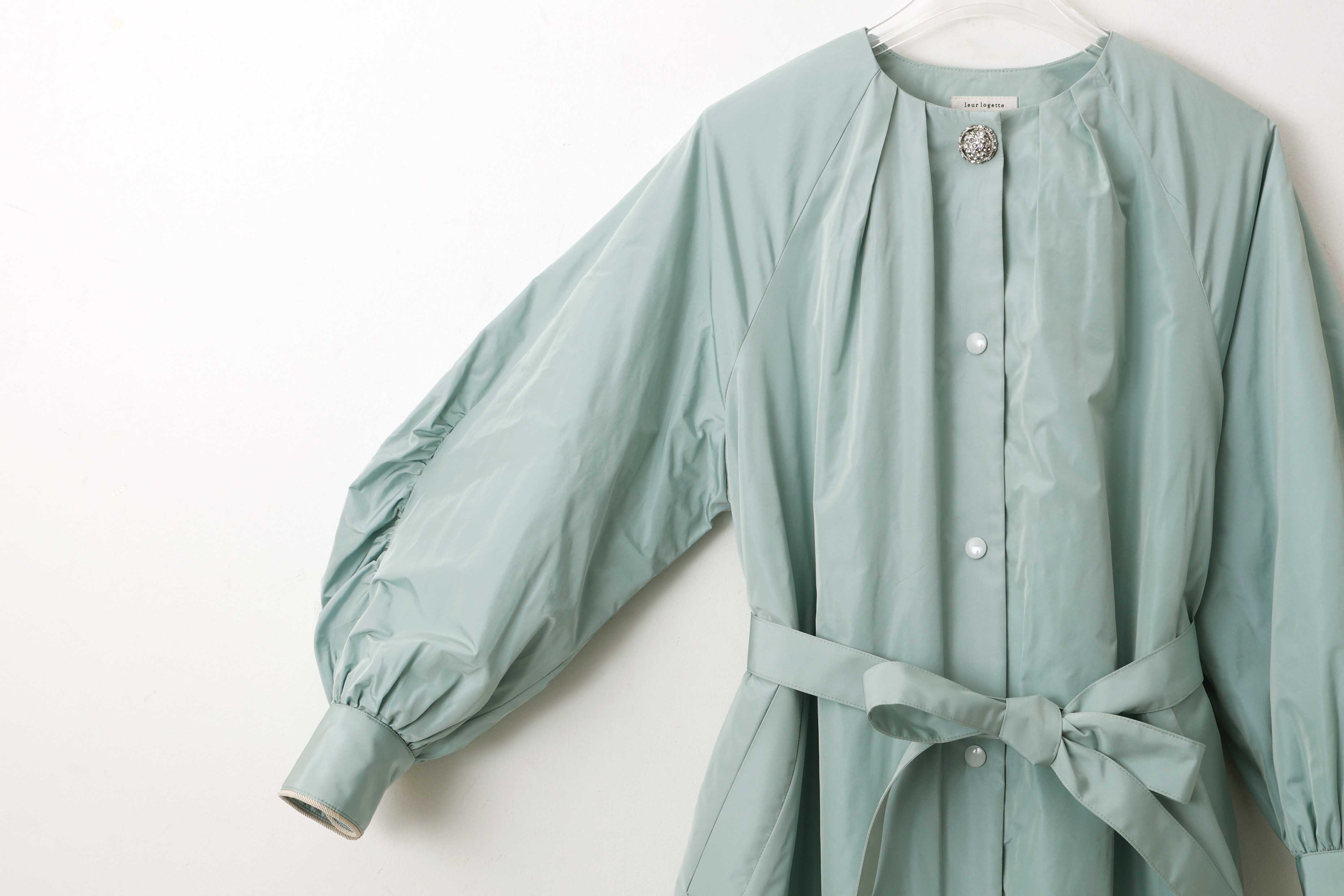 お客様からのご要望にお応えしてキャズエドゥミ別注でロングコートをお作りしていただきました。ロング丈のワンピースやスカートに合わせていただきやすい丈感で、すそのスカラップにこだわり、アンティークのボタンから型取りしたビジューボタンがポイントです。ベルトを外して綺麗めなAラインのシルエットや、ベルトを絞っていただくと腰位置が高くなりスタイルアップが叶うシルエットをお楽しみいただけます。中綿入りで軽くて暖かく、風を通しにくい仕様となっております。