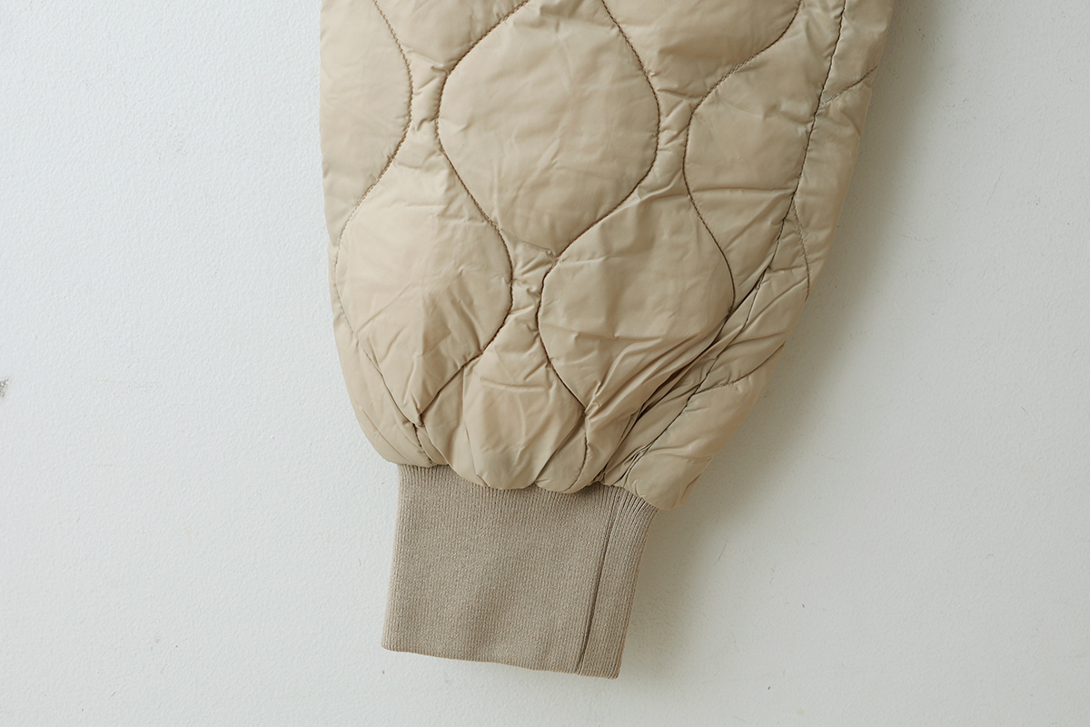 ・裾口は、風が入りにくいよう、リブ仕立てにしています。