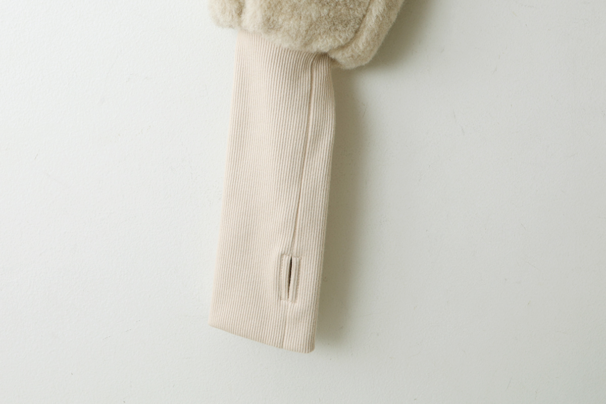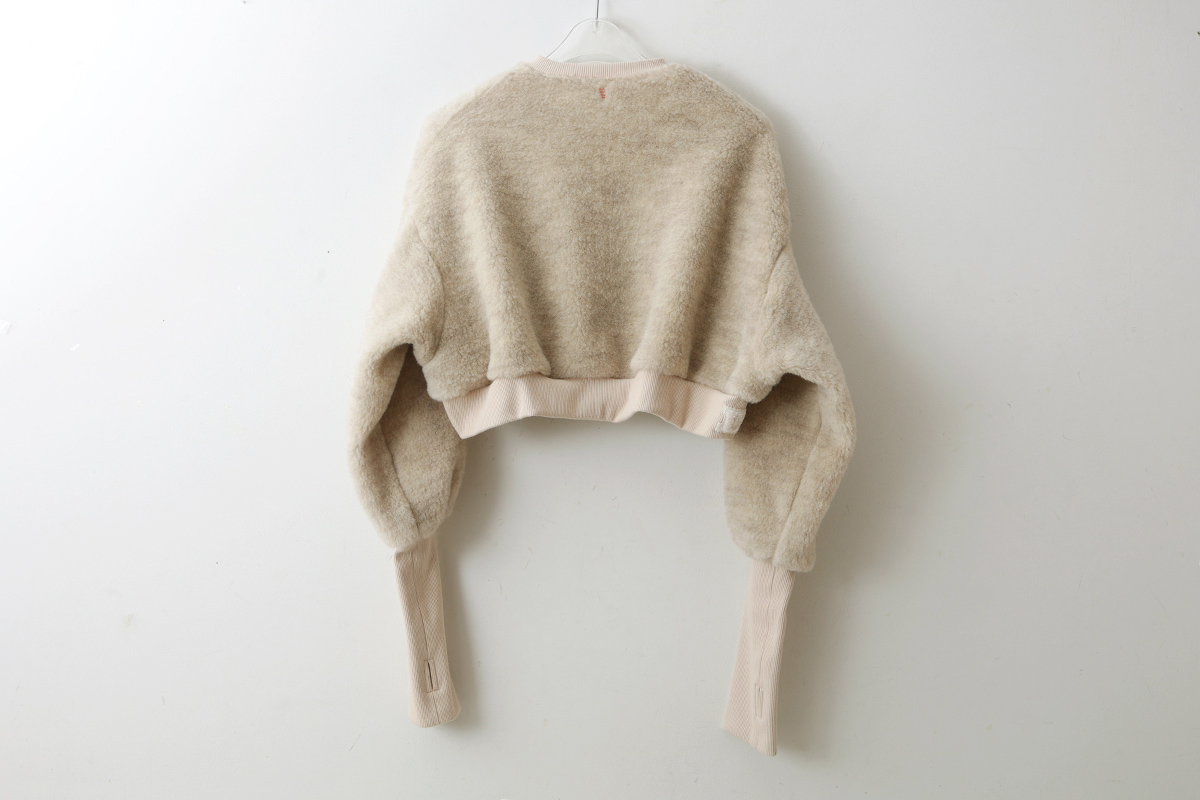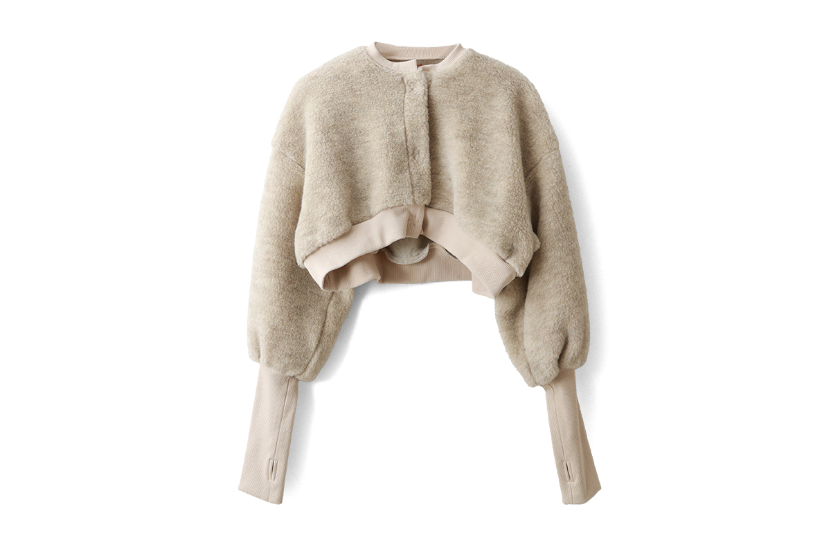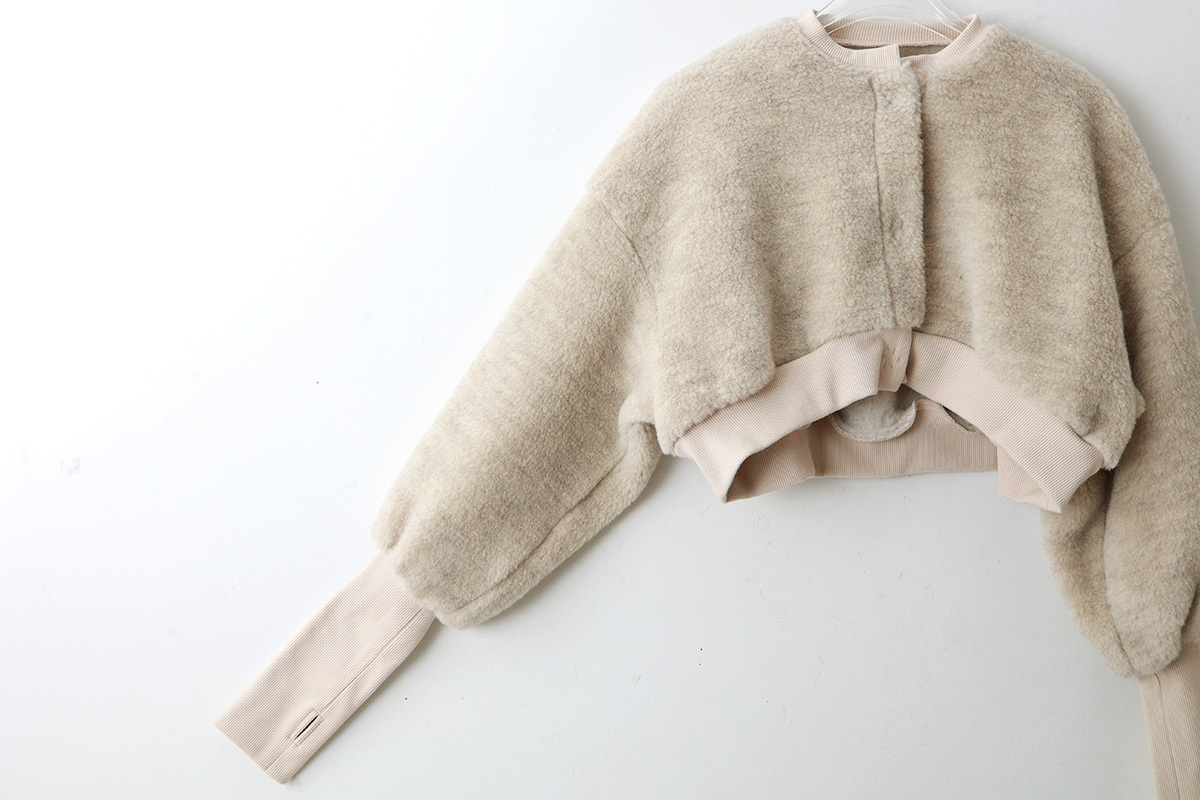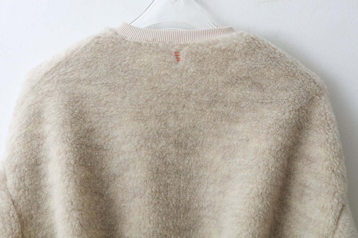 | 商品説明 | 毛100%のボアと綿100%のフライスで作られたショート丈カーディガン。 化学染料を一切使用せず自然環境に配慮して作られています。 ボレロのように着丈が短いので、ロング丈ブラウスやワンピース、サロペットの羽織におすすめです。たっぷりとした袖がかわいい。袖口はサムホール付きなので、寒い季節の防寒になります。 裾には、「E」の文字のワッペンがついています。 |