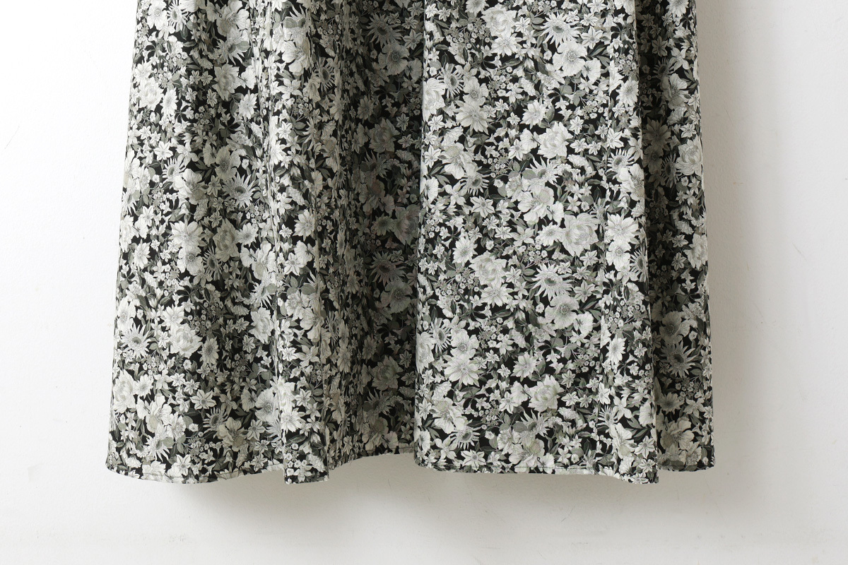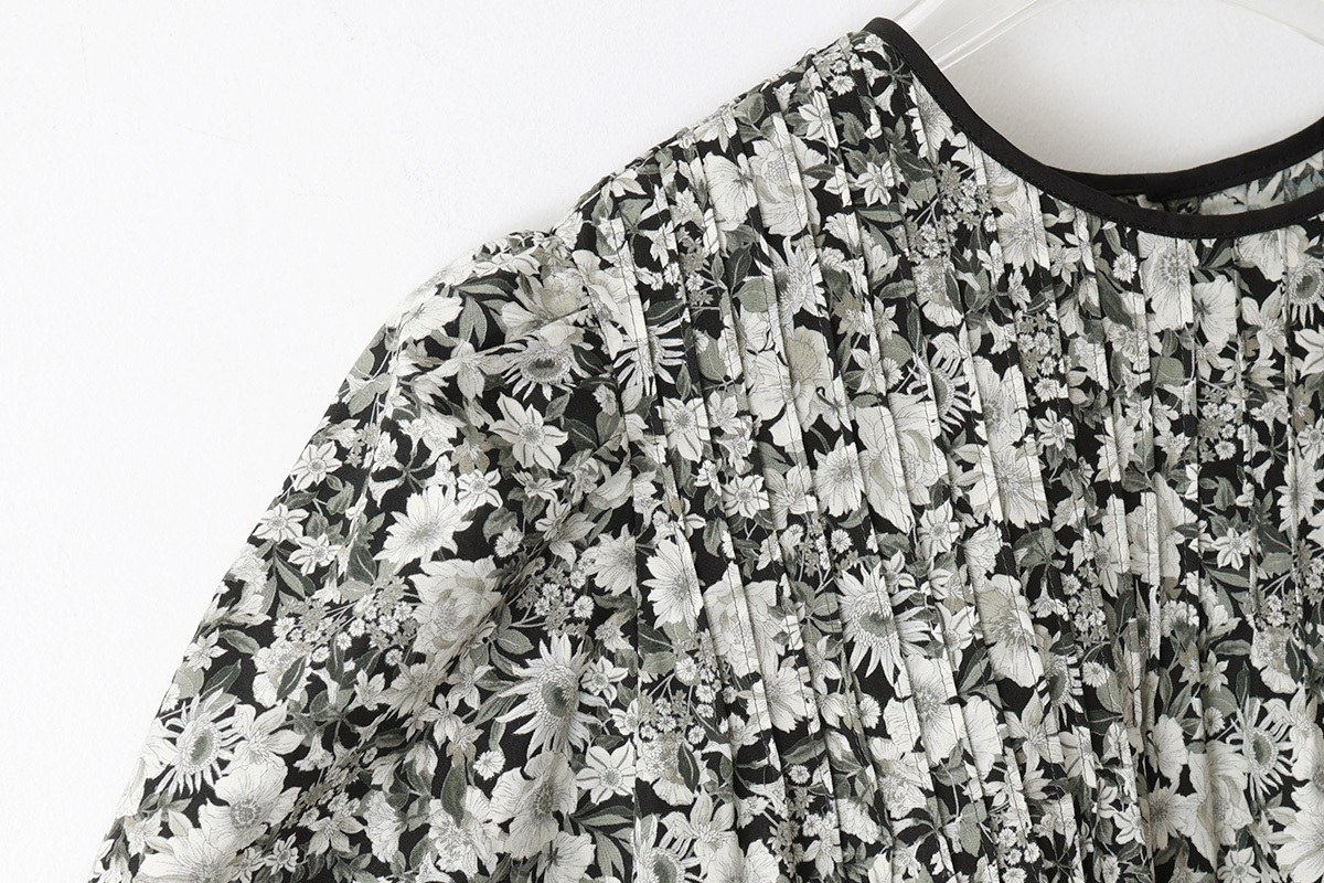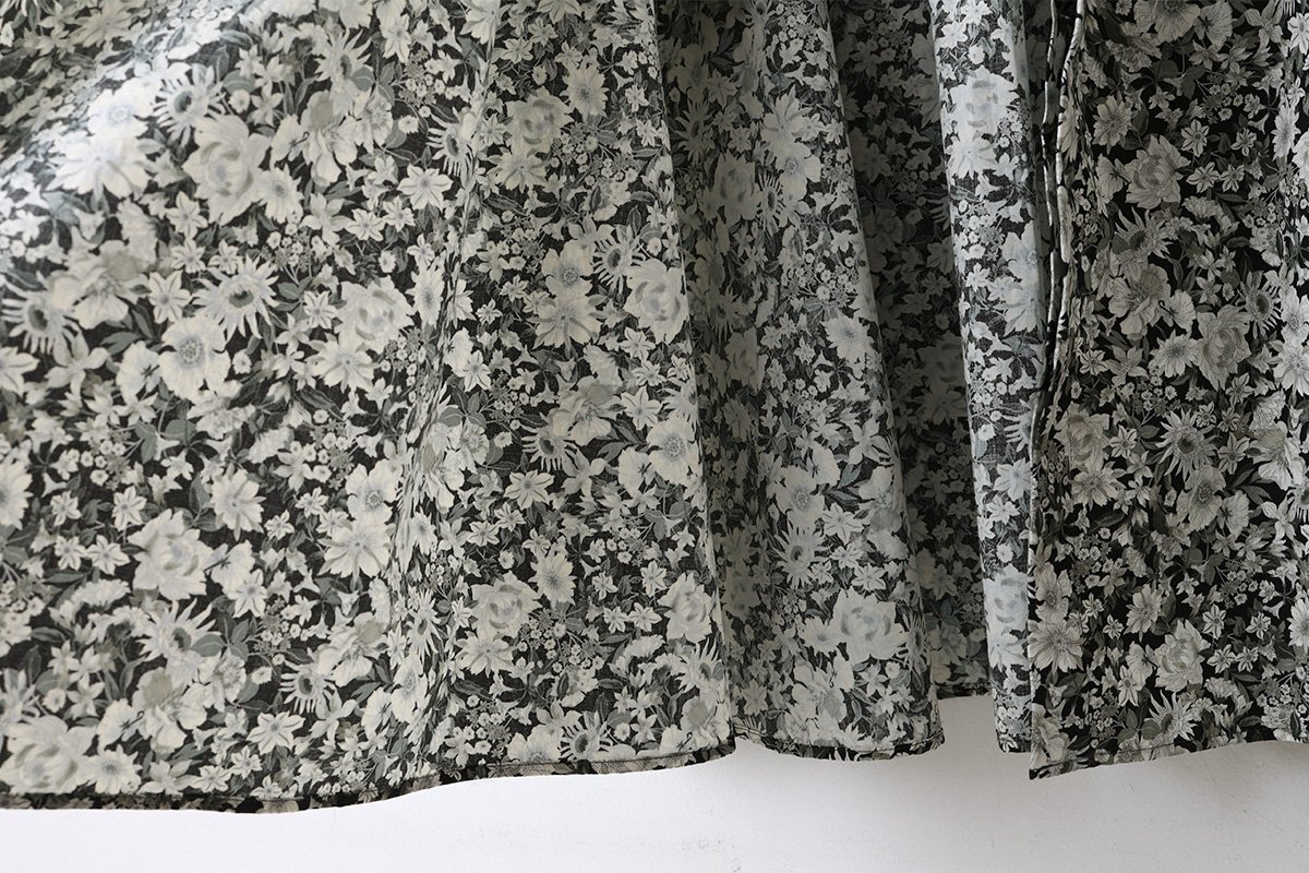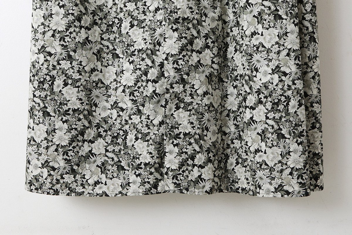 YAB-YUM定番のスカルプターワンピース。古い時代の彫刻家からインスパイアされた、前後の胸元に繊細なピンタックが並んだロング丈のワンピースです。後ろ開きでワンピースとして、前開きで羽織物としてもお召しいただけます。今シーズンはYAB-YUMでは新鮮な小花柄、衿の黒いパイピングがアクセントになっています。