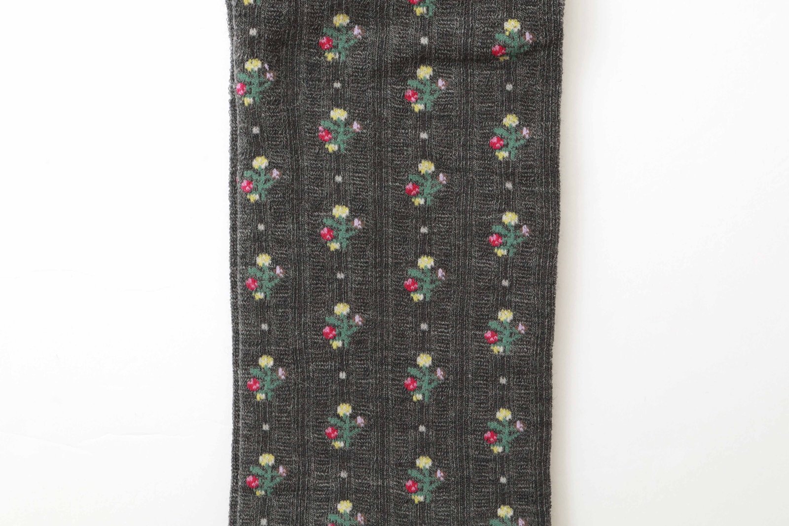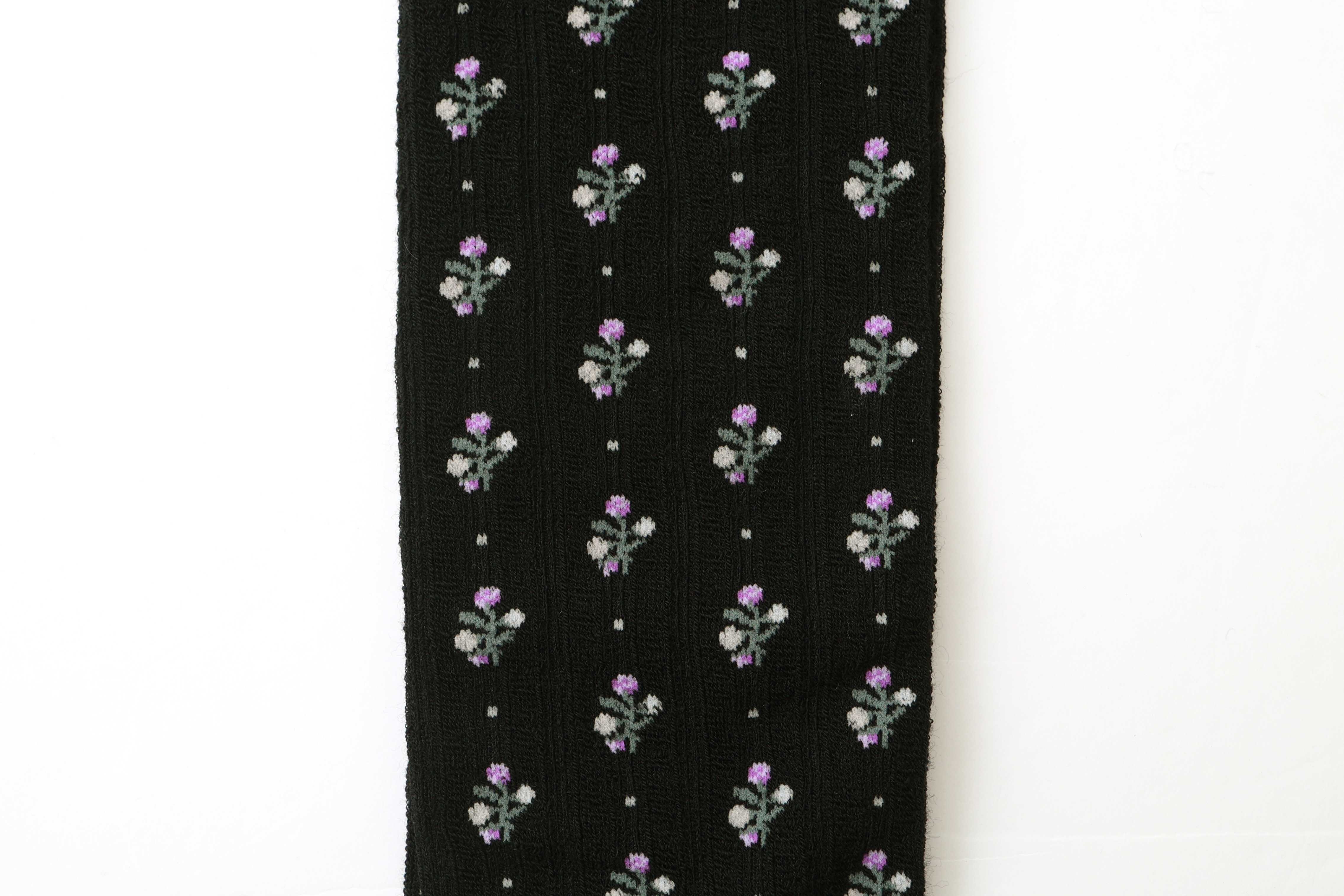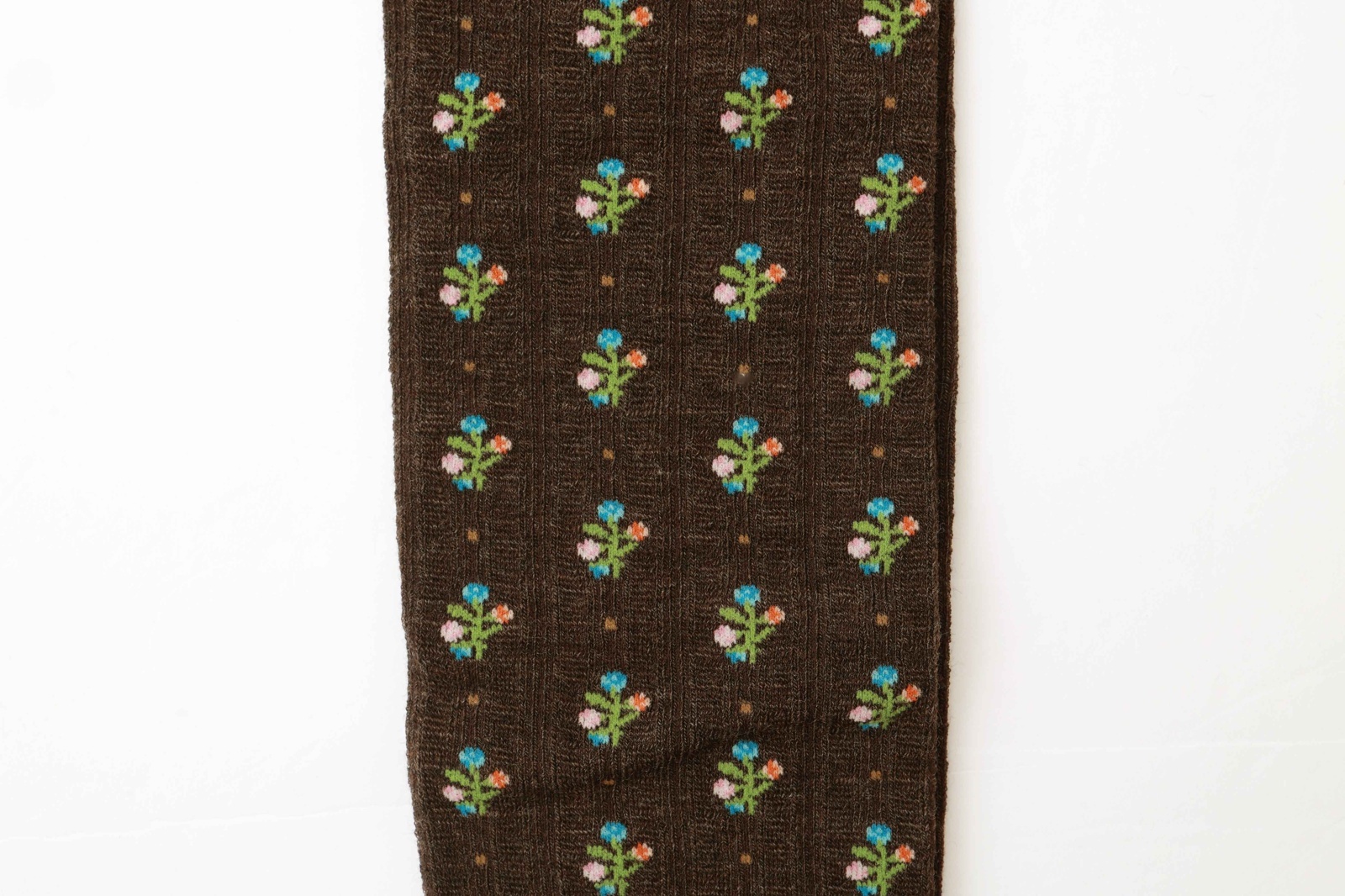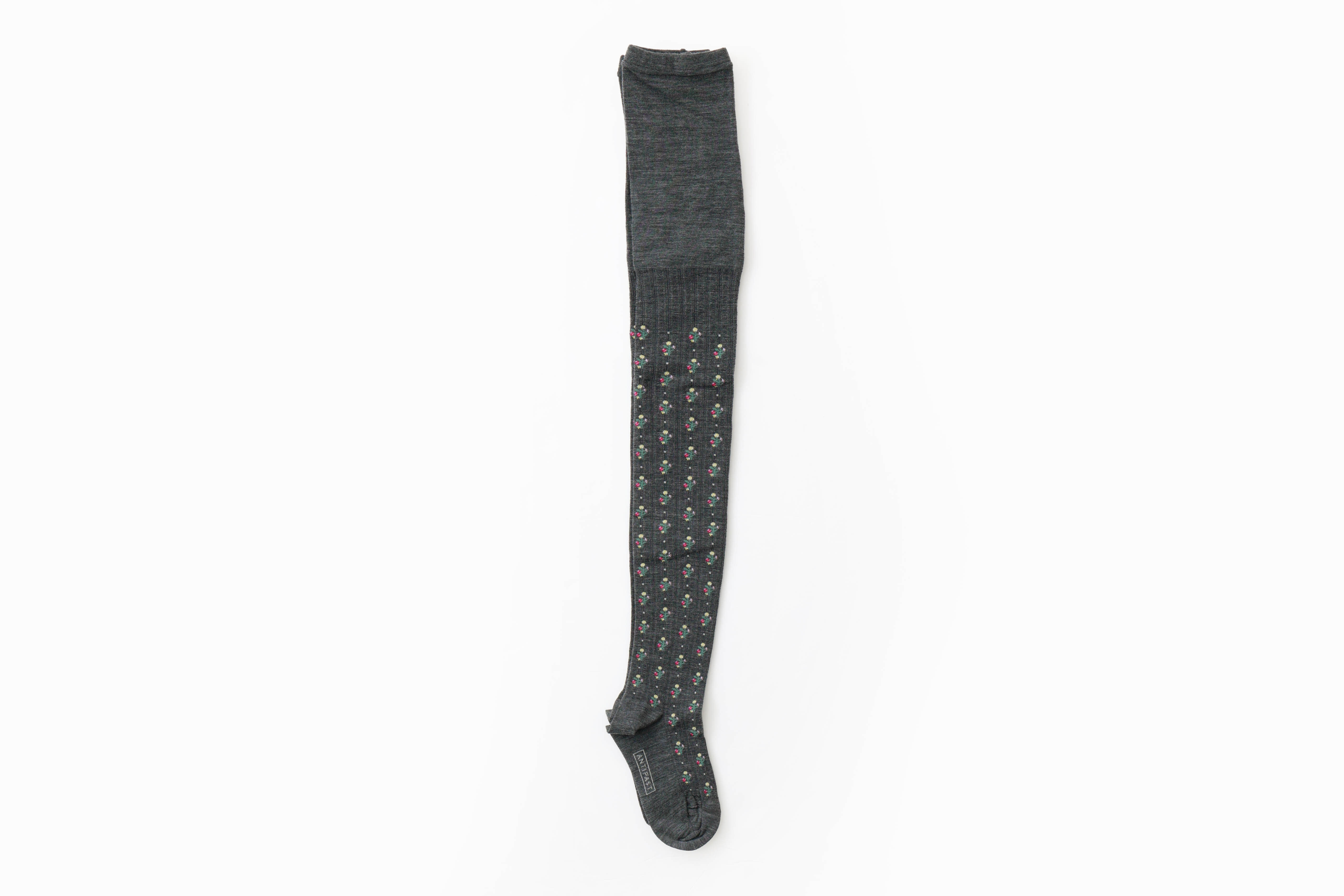 ストライプの編地に小花柄がデザインされたウール素材のタイツ。
