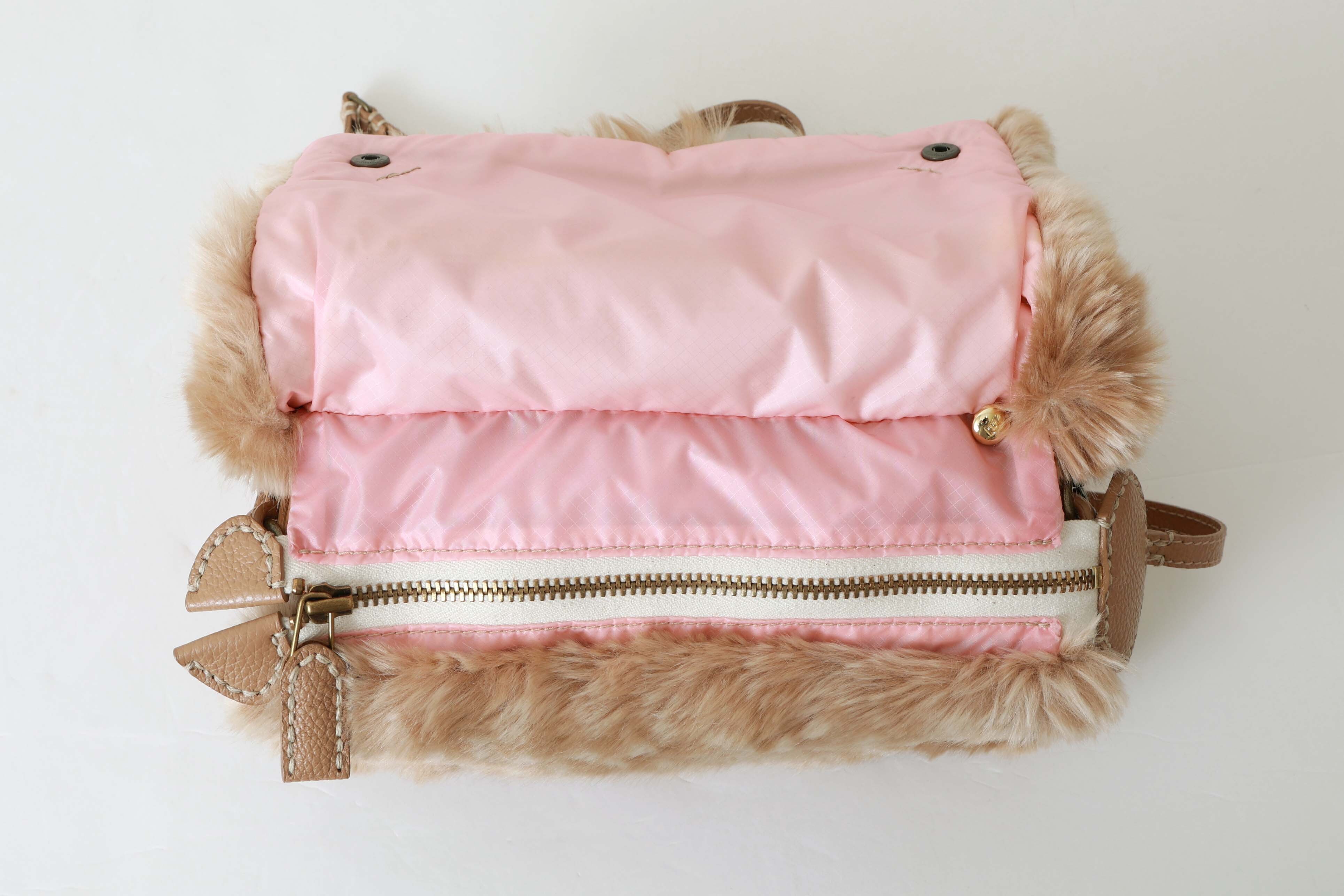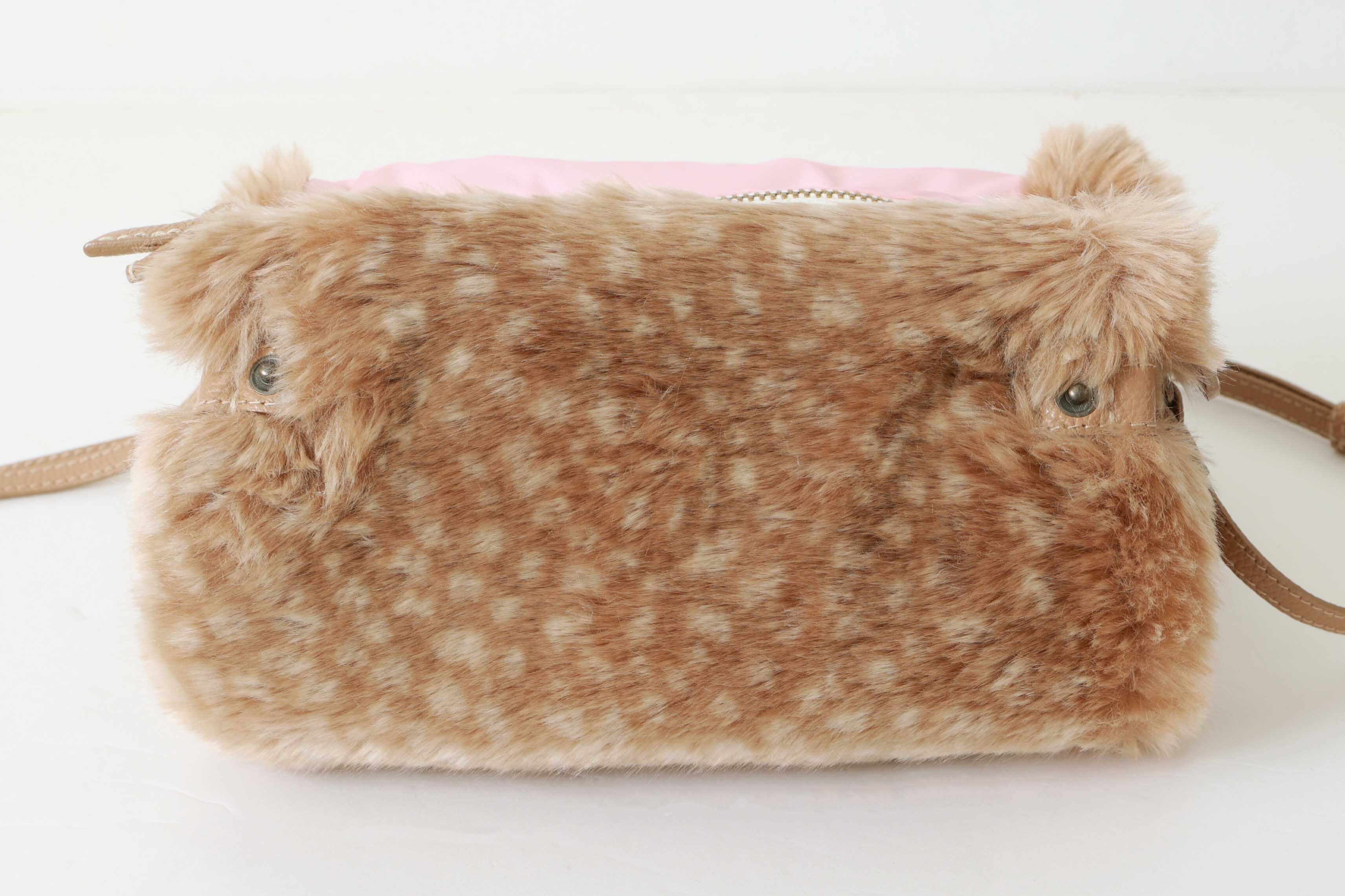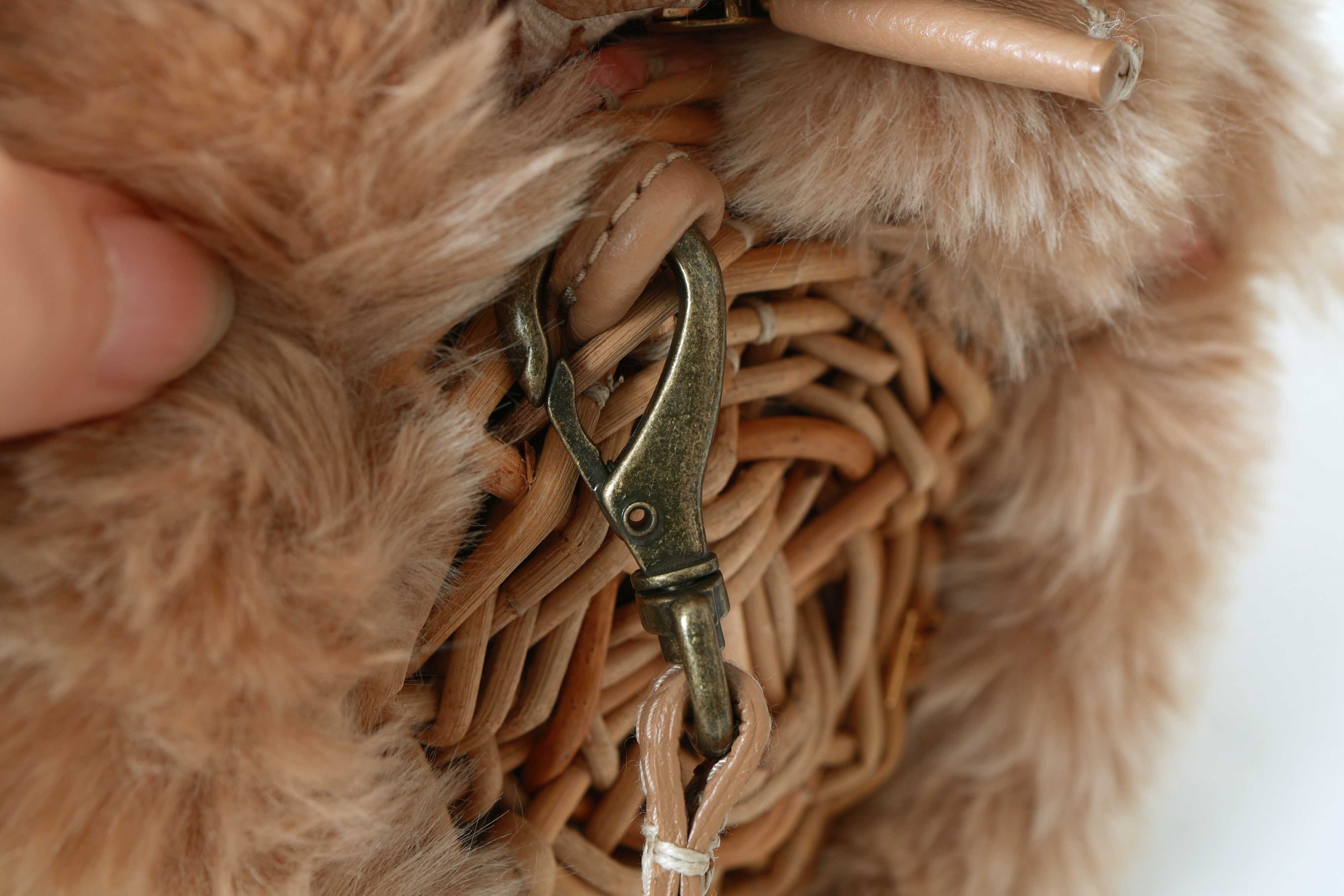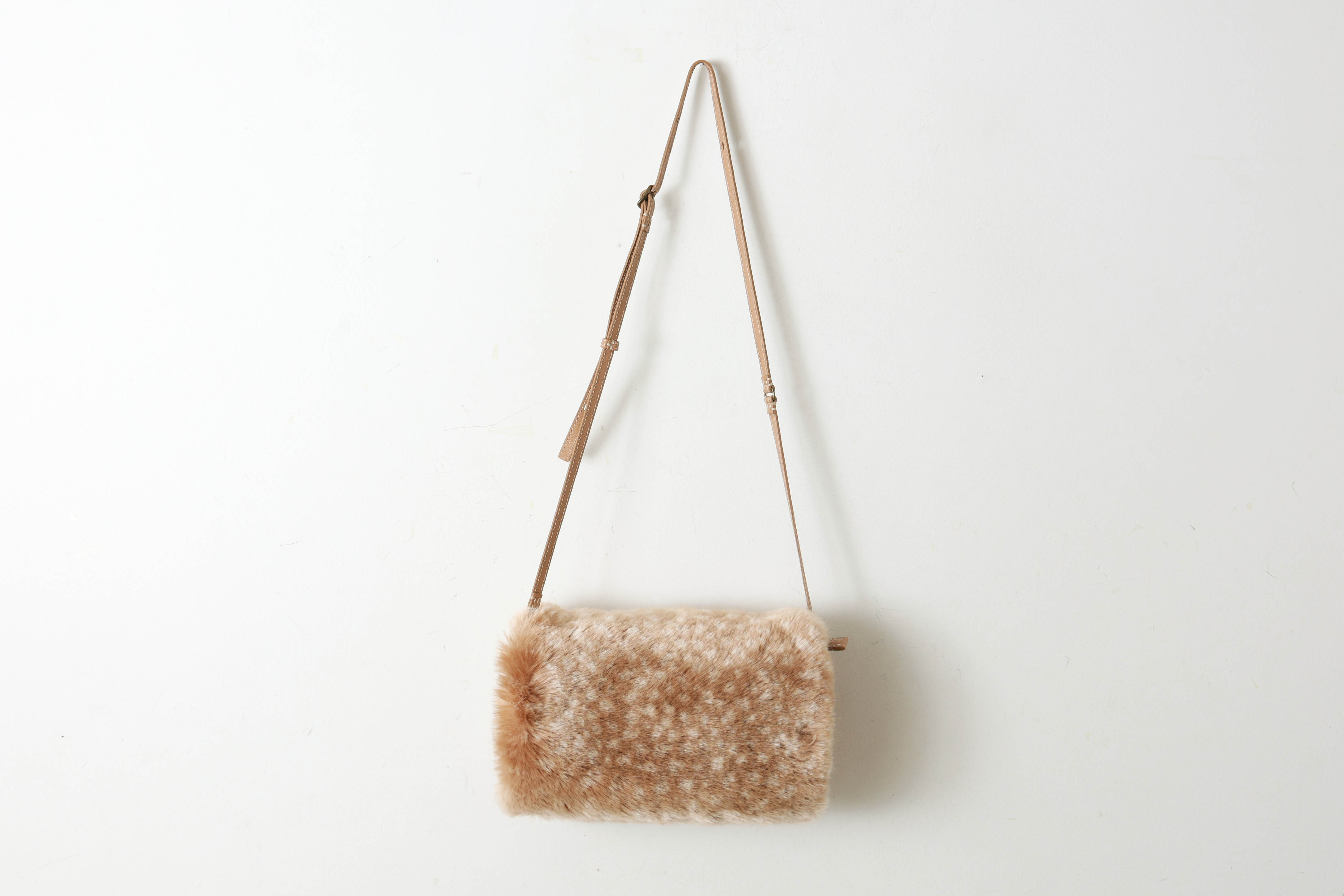 | 商品説明 | アクリル100%のバンビ柄のエコファーが使用されたロールケーキのようなバッグです。フェイクファーからちらりと覗くサイドの紅籐が素敵です。ショルダー紐は、取り外し可能で長さの調整もしていただける仕様となっております。 |