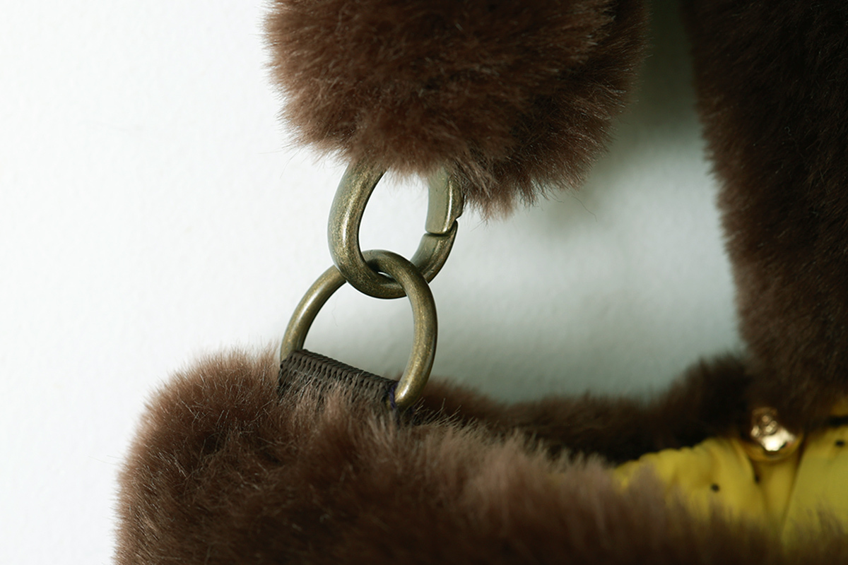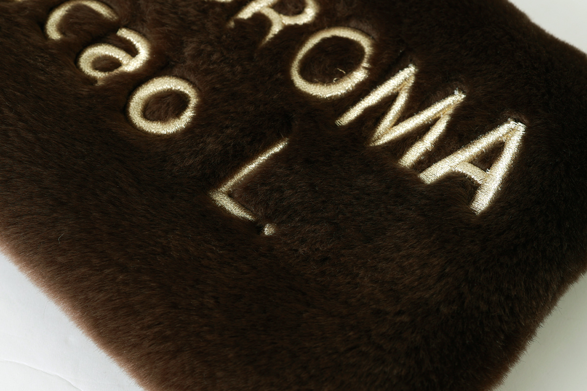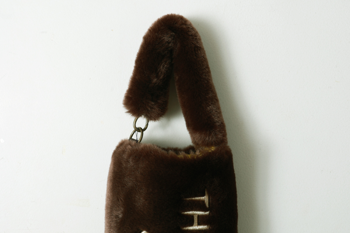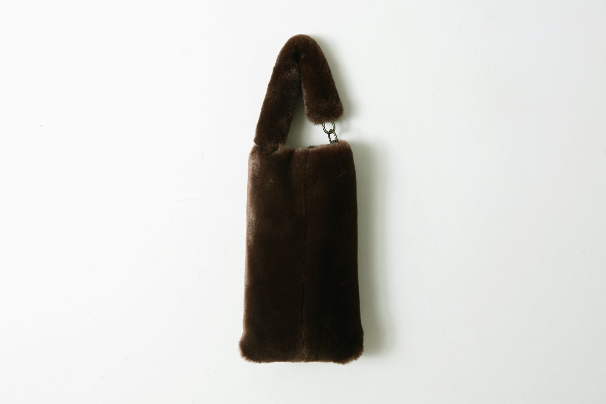 アクリル100%のエコファーに"CHOCOLATE"テーマにちなんだ刺繍をしたポーチです。ナスカンを取り外してバッグに付けてお使いいただけます。別売りの「ソフトショルダーベルト」を接続するとショルダーバッグにもなります。ポーチとしてはもちろん、持ち手付きなのでちょっとしたお出かけにもご使用いただけます。500mlのペットボトルがすっぽり収まるサイズ感です。
