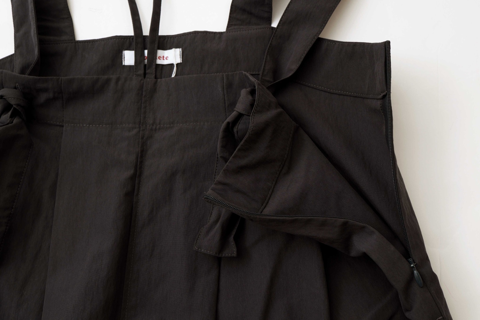 | 商品説明 | 綿ナイロンのハリと質感がある素材が使用されたオーバーオールです。 程よい光沢感で適度なハリがある生地感です。 肩紐の結び目がポイントで、お好みの長さに調節していただくことができます。サイドにはファスナーが付いているので着脱していただきやすい仕様です。カットソーやシャツ、ニットなど幅広いコーディネートをお楽しみいただけるアイテムです。 |