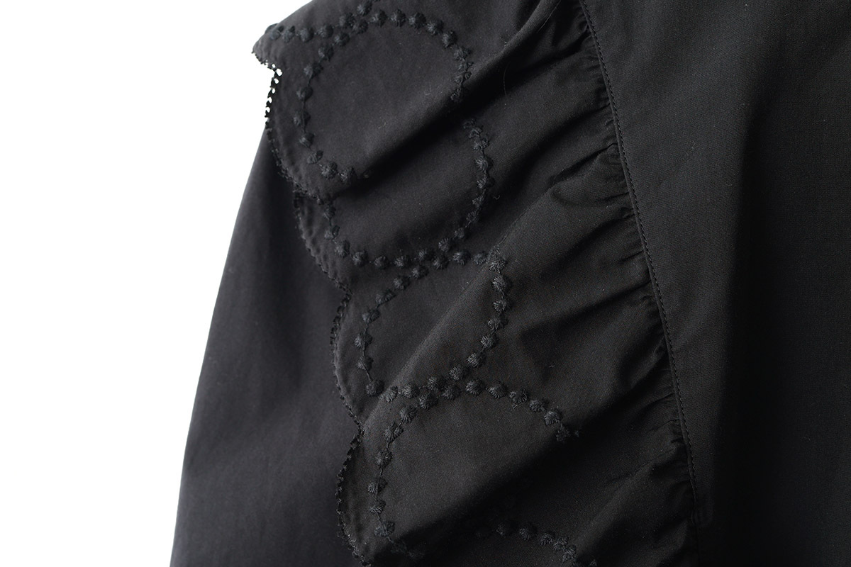 | 商品説明 | ブランドを象徴するテキスタイルのひとつ“tambourine(タンバリン)”。人の手の跡を消さないように表現した不揃いの粒は、不完全なものの美しさや、それぞれの個性をあらわしています。強く撚った経糸と、撚らずに揃えた緯糸をぎゅっと密度をこめて織った生地で作られたブラウス。“tambourine”の刺繍生地をレースのようにあしらったデザイン。光沢を帯びた繊細な表情と、張りのある質感が共存するコットン地で仕立てられています。 |