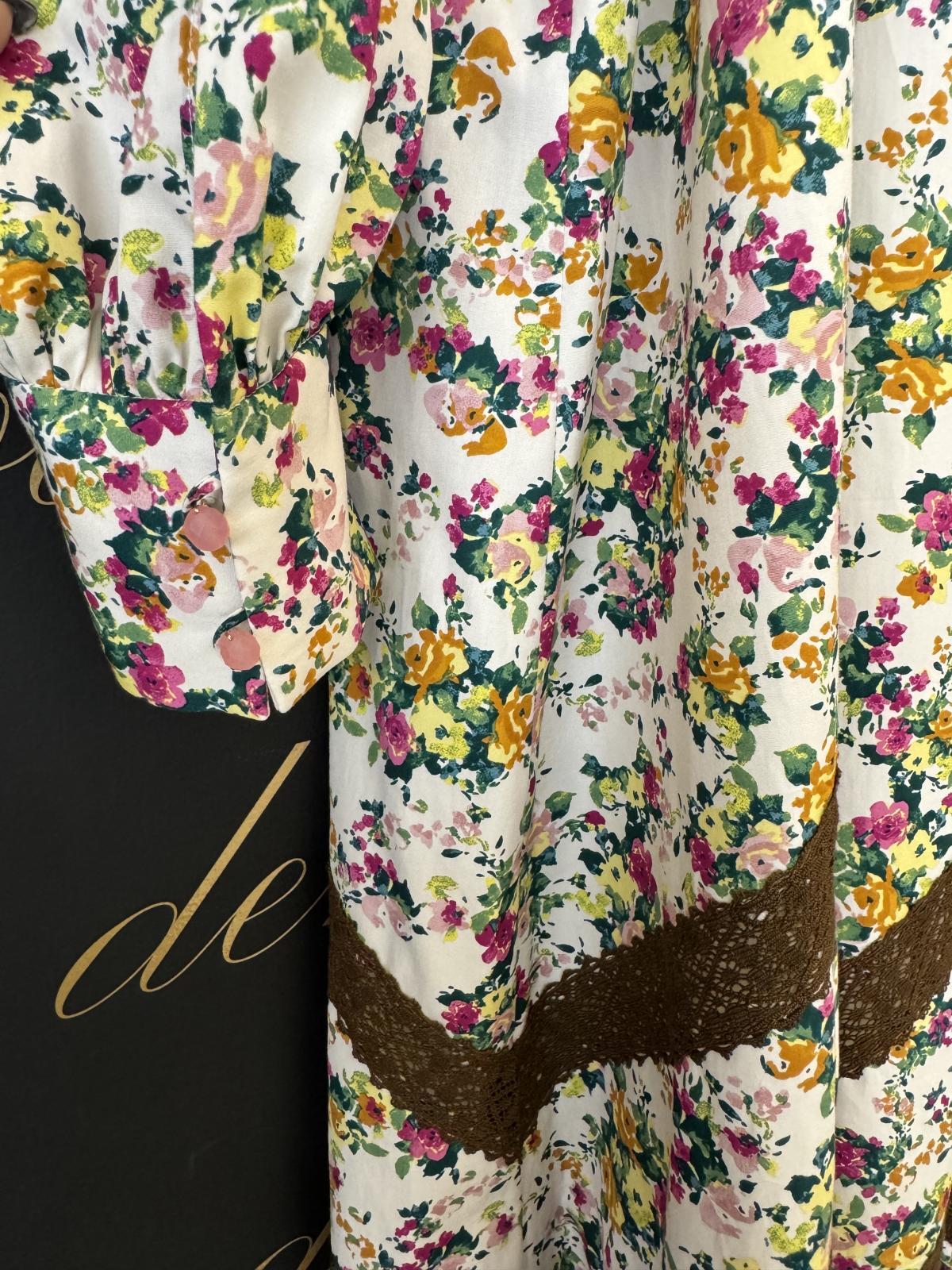 leur logetteアーカーイブのフラワープリント生地でショップ別注のギャザーワンピースをお作り頂きました。袖と裾に添えられたレースがが大人のかわいさを演出します。シンプルに一枚で着るだけで、華やかな雰囲気になります。着心地も楽ちんで軽やか。オールシーズンお召し頂けます。