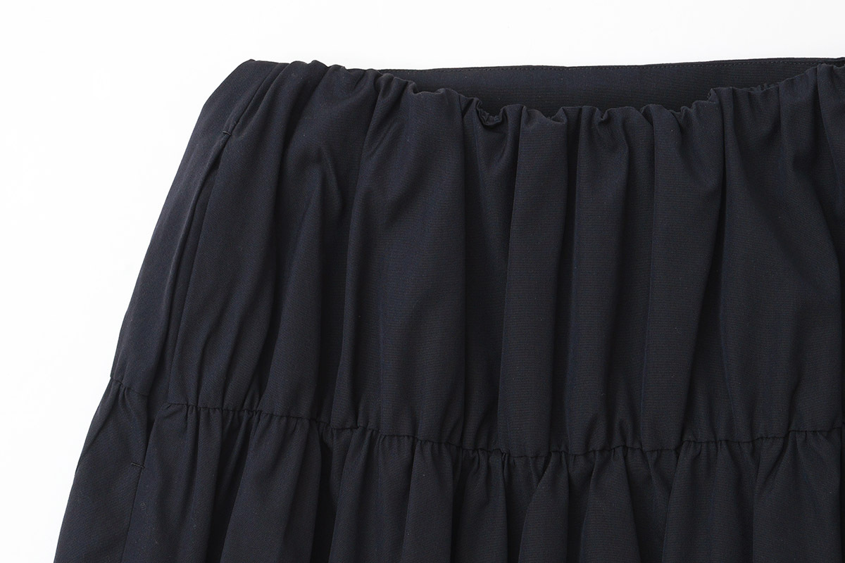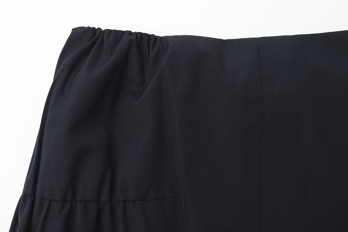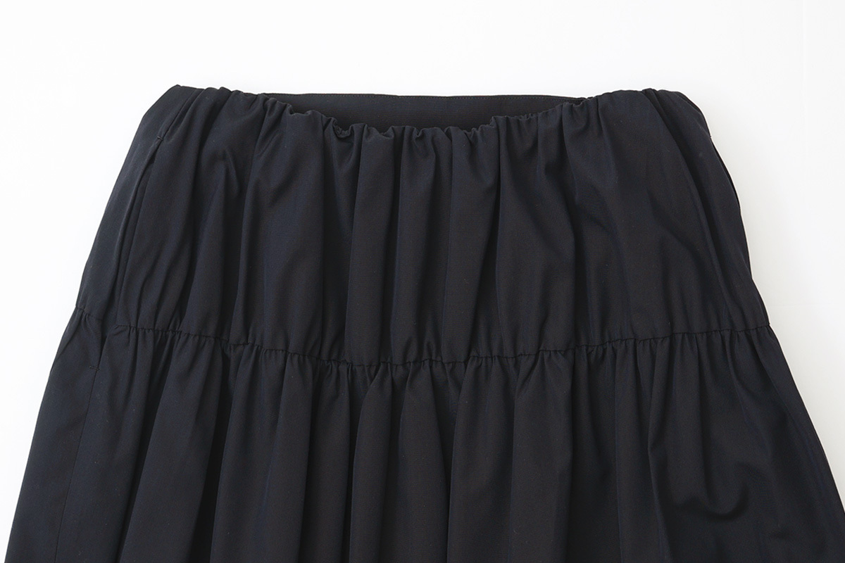 | 商品説明 | 経糸にウール、緯糸にスパンシルクを使って高密度に織り上げられた“sol(ソル)”。スパンシルクは、通常のシルクに比べて伸縮性や柔軟性があり、シルクの光沢と、心地よい着心地が魅力です。 フラットな生地に、部分的にギャザーを寄せて立体的なシルエットになるよう作られたスカート。サイドと、背面にボリュームを出して、ミニマムなムードの中に柔らかな表情が加えられています。オフィスシーンでの着用など、落ち着いた雰囲気でお召しいただけます。 |