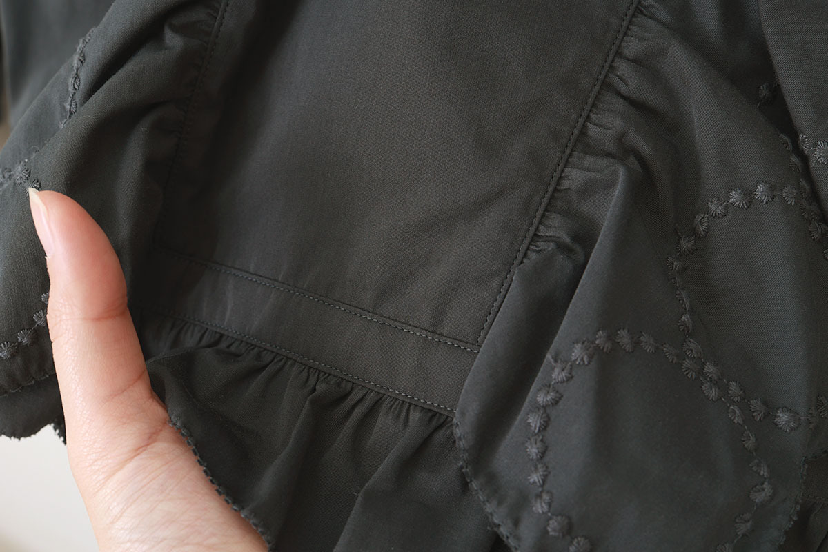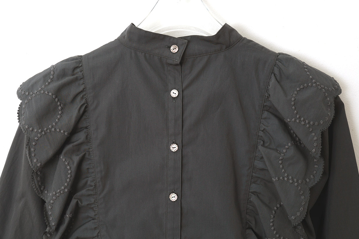 | 商品説明 | ブランドを象徴するテキスタイルのひとつ“tambourine(タンバリン)”。人の手の跡を消さないように表現した不揃いの粒は、不完全なものの美しさや、それぞれの個性をあらわしています。強く撚った経糸と、撚らずに揃えた緯糸をぎゅっと密度をこめて織った生地で作られたブラウス。“tambourine”の刺繍生地をレースのようにあしらったデザイン。光沢を帯びた繊細な表情と、張りのある質感が共存するコットン地で仕立てられています。 |