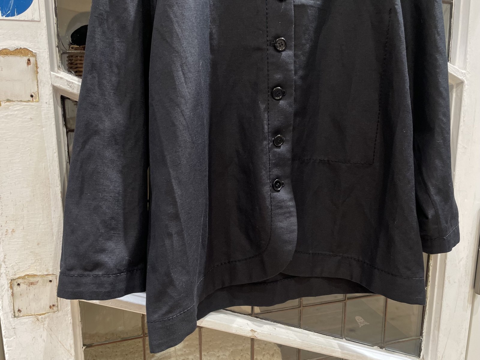 ウールリネンの中肉のジャケット。
