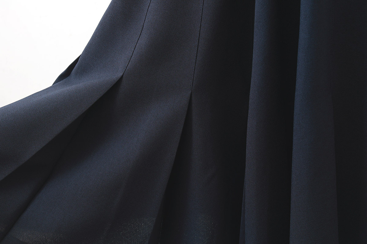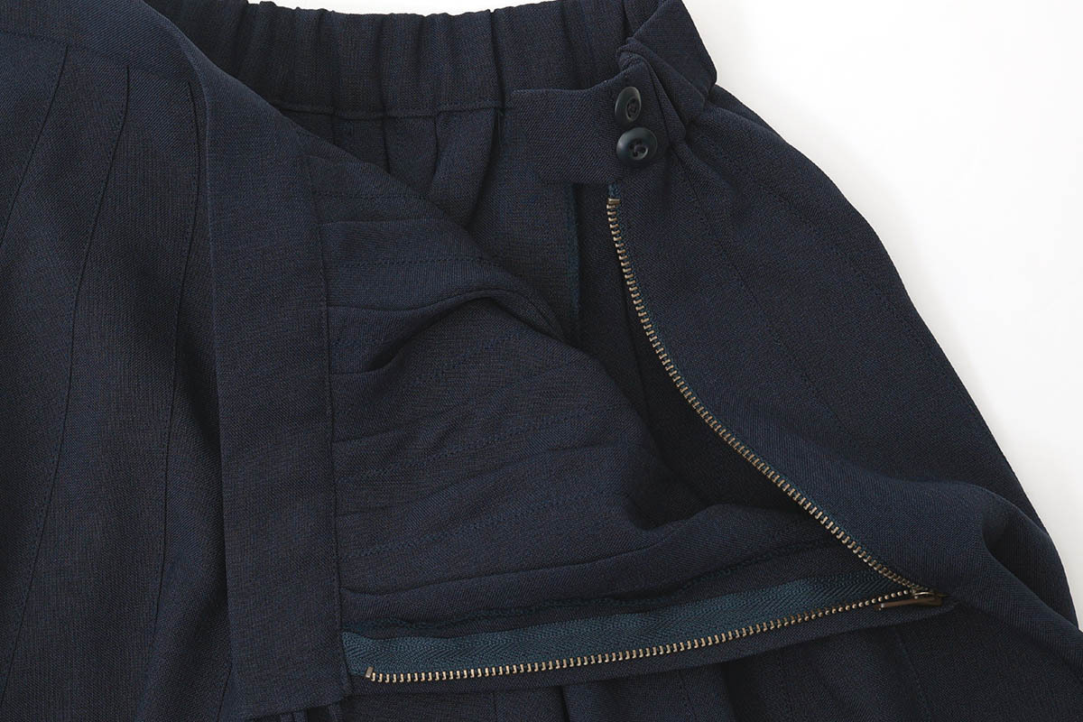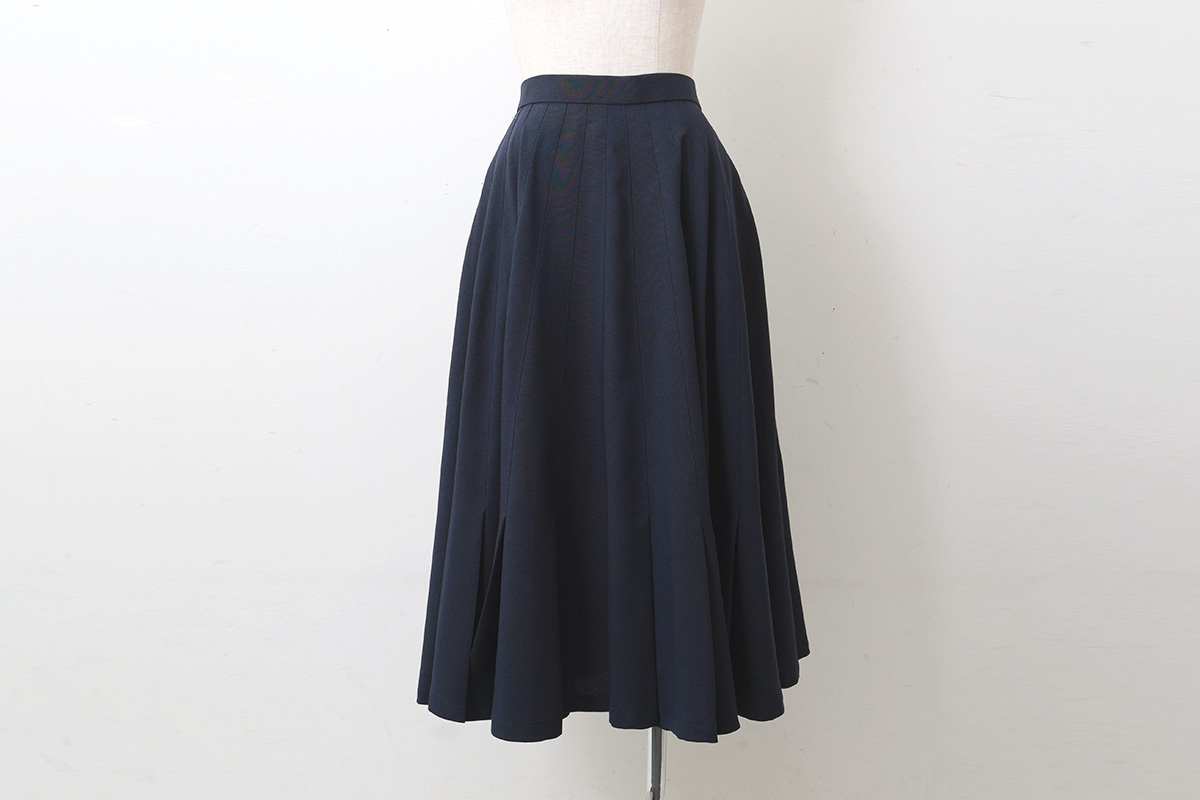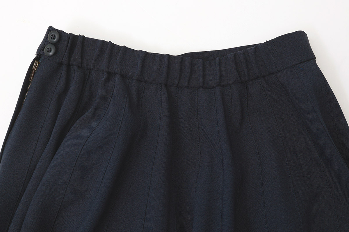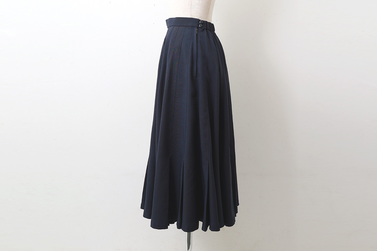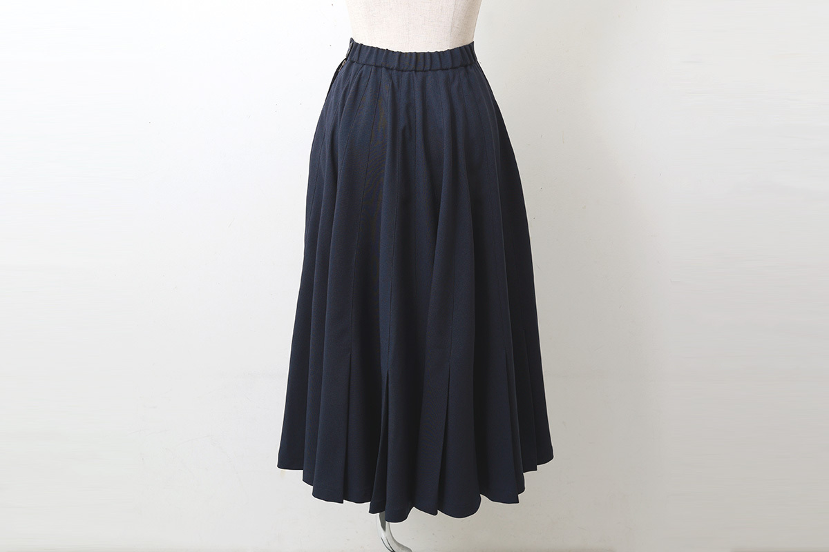 贅沢に生地を使用したサーキュラープリーツスカート。柔らかくとろみのある素材で、歩くとエレガントな動きの出るスカートです。上品さがありながらも扱いやすい素材、かつオールシーズン使える素材なので幅広いシーンでお使いいただけます。