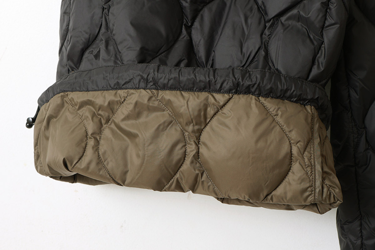 | ※ | ダウンは天然由来の素材であるため、稀に濃い色の羽が混入することがあり、表面に透けて見える場合がございます。※こちらは不良品ではございません。返品や交換につきましてはご対応いたしかねますので、あらかじめご了承ください。(解消方法:少し目立つ箇所がございましたら両手で少し揉んで頂くと目立たなくなります。) |