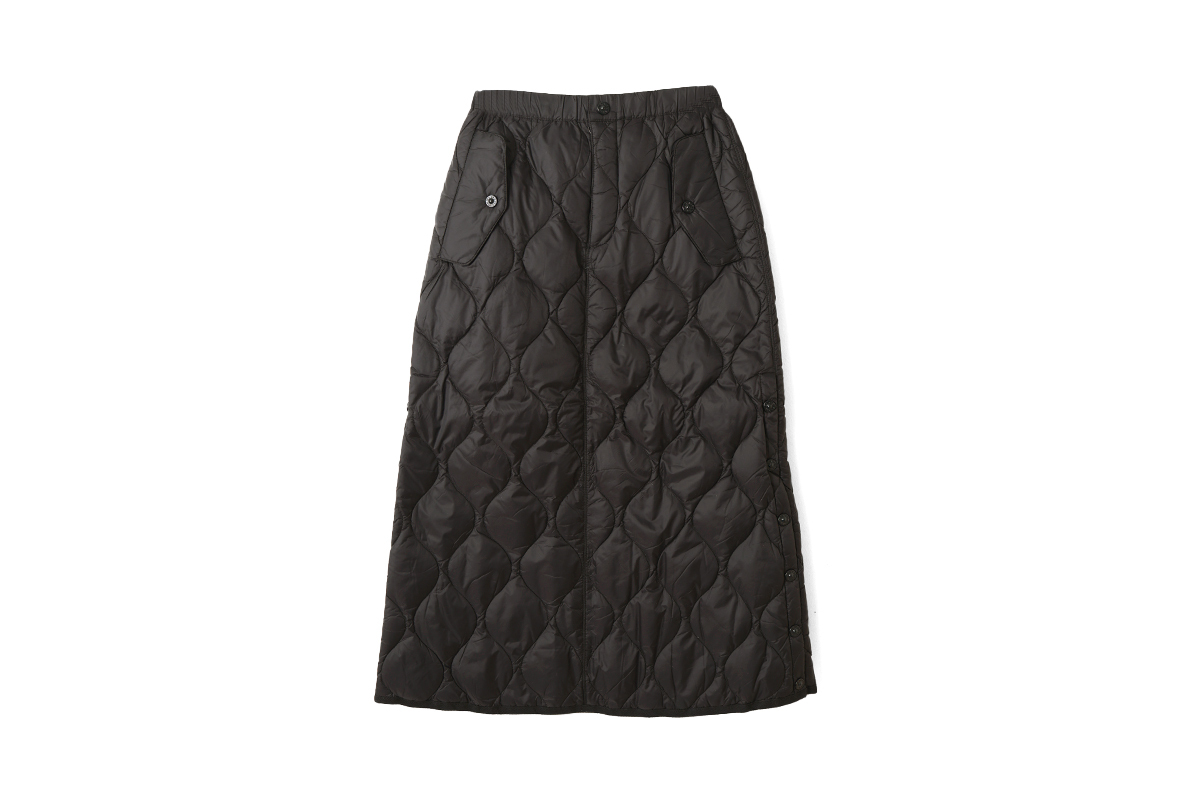 金属ボタンのスリットがアクセント、履き心地を重視したミリタリーダウンロングスカート。心地いいボリューム感は、冬のアウターとの相性も抜群です。軽くて柔らかな生地は保温性もさることながら履き心地抜群です。ひざ上まで開閉できるサイドスリットにより、ロングスカートでも足さばきを容易にしています。スパッツやパンツとの重ね着もおすすめな、暖かく履き応えのある、ミリタリーテイストのダウンスカートです。同シリーズ(MILITARY LINE)のダウンウェアやダウンマフラーなどと合わせていただくこともお勧めします。