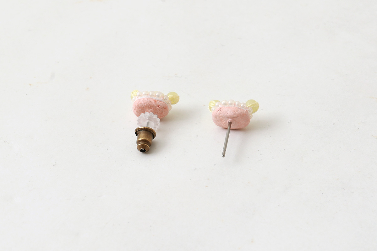 <Earrings> イヤリング金具:真鍮(フランス製) *金属アレルギーの方は 付属の樹脂カバーをご使用ください。